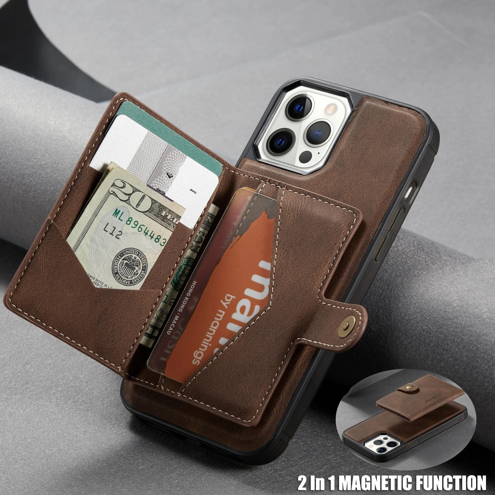 Магнитный чехол-кошелек 2 в 1, кожаный чехол для iPhone 11, 12, mini Pro, XR, XS, Max X, 7, 8 Plus, роскошный автомобильный держатель с разрезом
