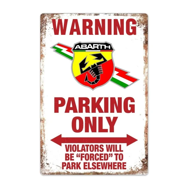 Предупреждение Abarth парковки только Винтаж гараж Оловянная металлическая табличка клуб бар кафе-гараж Настенный декор ферма декор искусство подарок-2
