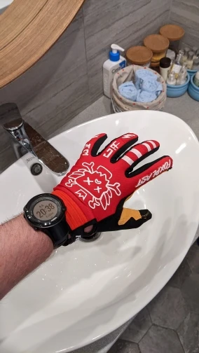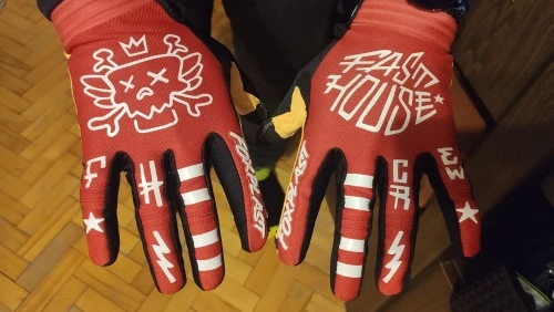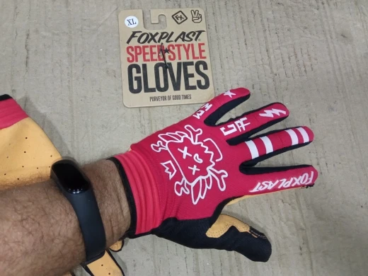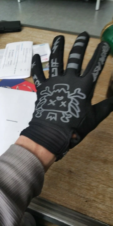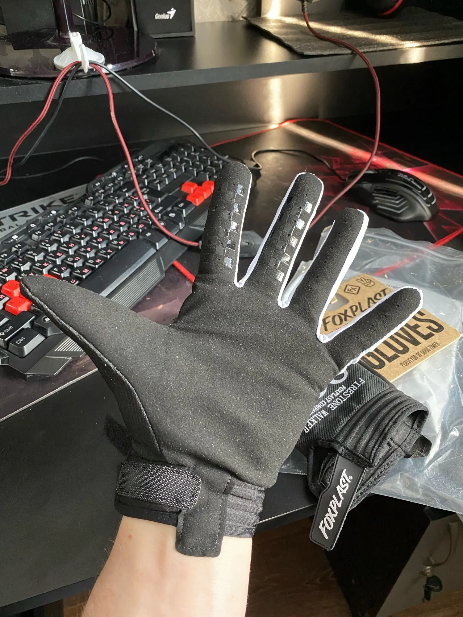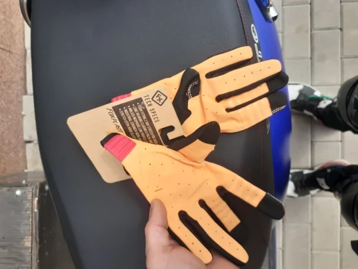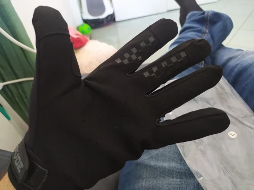 Перчатки пытаются быть крутыми. На деле у них это не вышло. Резиновый текст под указательным пальцем мешает сгибаться и норовит повернуть ткань пальца. Это раздражает. На левой руке сшито со складкой, она мешает при держании руля. Шов на конце указательного пальца левой руки подвернут с дефектом, что так же доставляет дискомфорт и боль перфекциониста. Кожа тонкая, мои старые перчатки при той же цене, были гораздо плотнее изготовлены.
