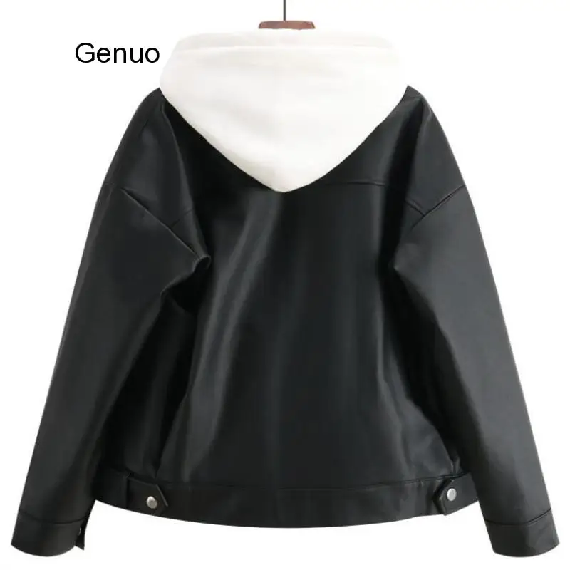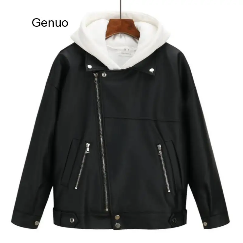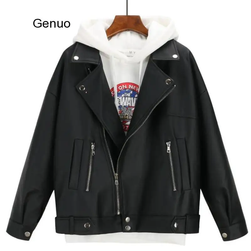 Женская осенне-зимняя кожаная куртка оверсайз бойфренд корейский стиль женское искусственное пальто Верхняя одежда черная