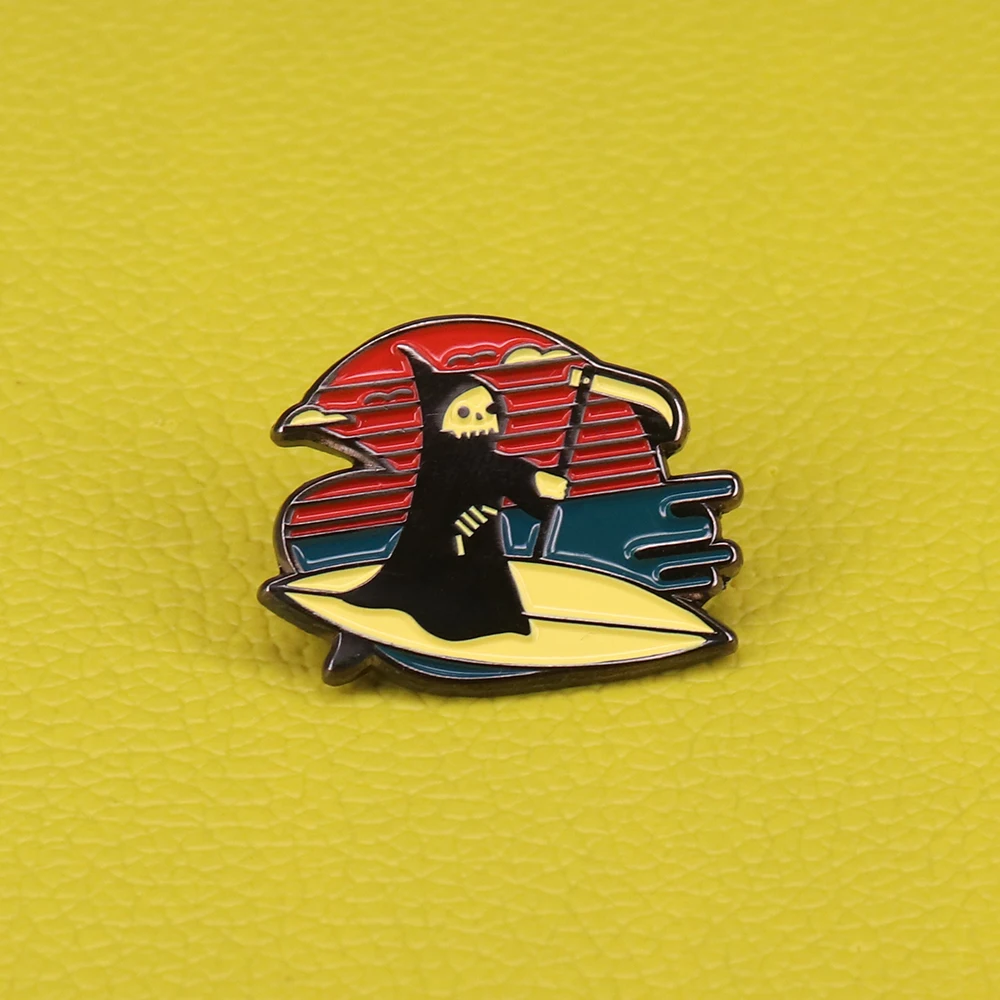 Готический Мрачный Жнец контакты кот гроб смерти Броши серфинг Ghost Beach волна значок Хэллоуина