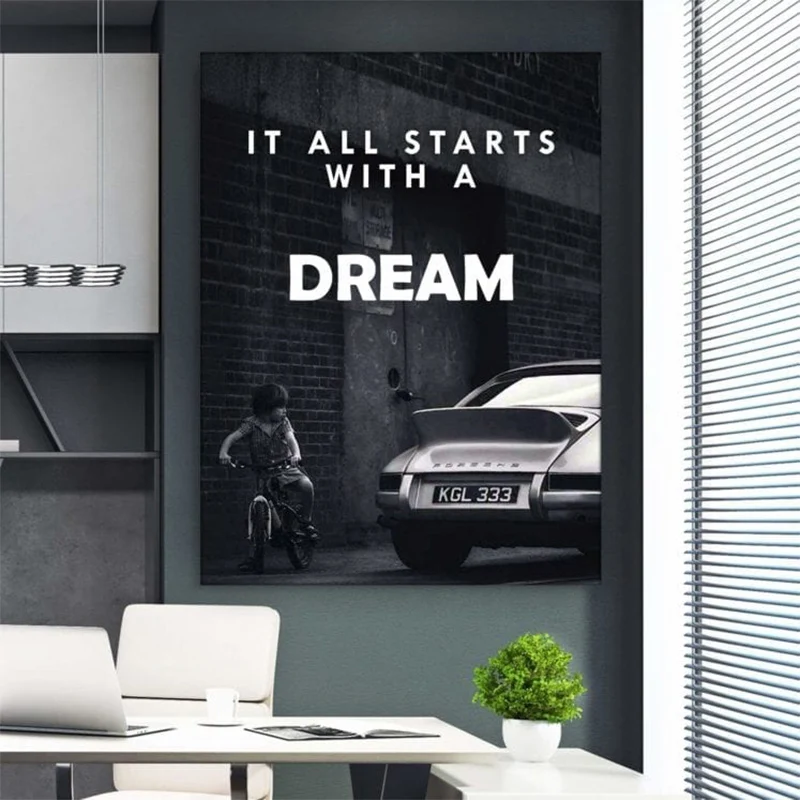 Мотивационный плакат черно-белого цвета, он начинается с мечты, Кар...