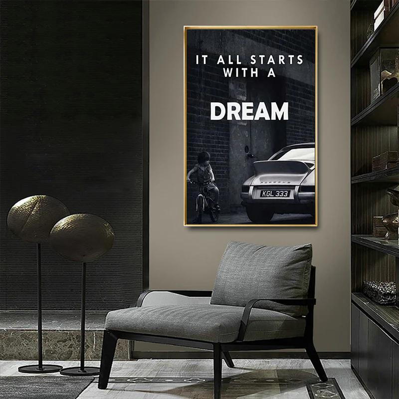Украшение для дома плакат черно-белый он начинается с мечты Холст К...