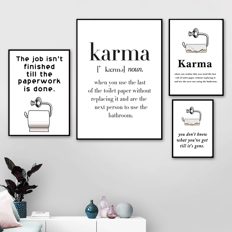 Туалетная бумага Карма скандинавский Холст Плакаты и принты настенное искусство холст живопись настенные картины для ванной домашний декор стен