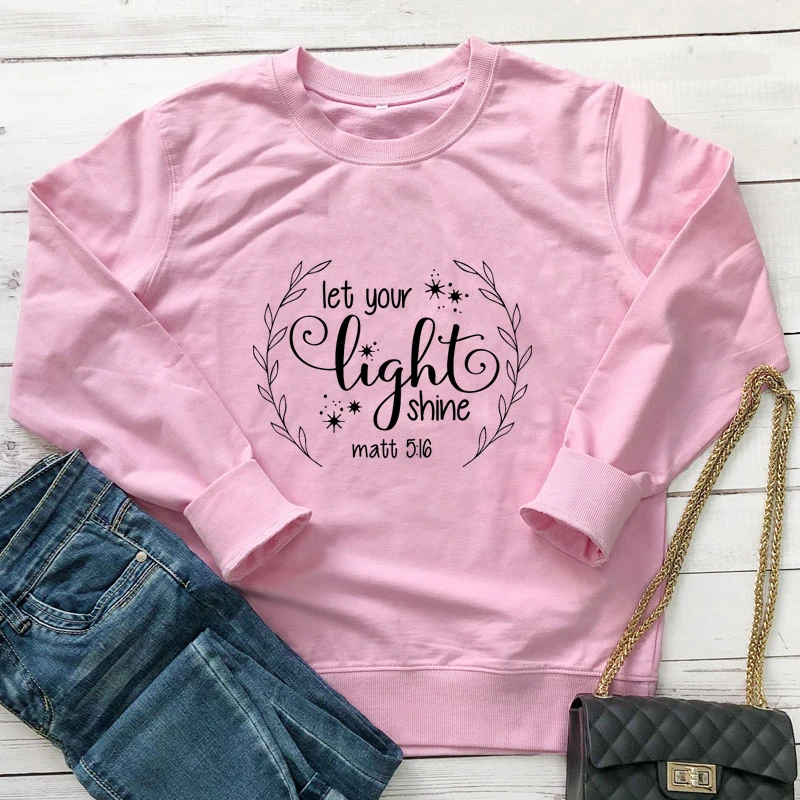 Пусть ваши светильник блеск матовый 5:16 Толстовка католический Для женщин с длинным рукавом Christian Библейская вера пуловеры