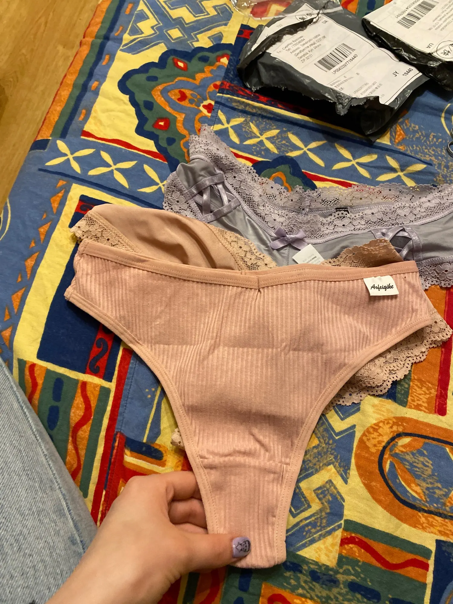 я заказывала вот такие. хотела серые хлопковые стринги. а пришли кружевные бразильяны - совсем не то, но качество хорошее, поэтому не открываю спор. на фото показываю, что пришло