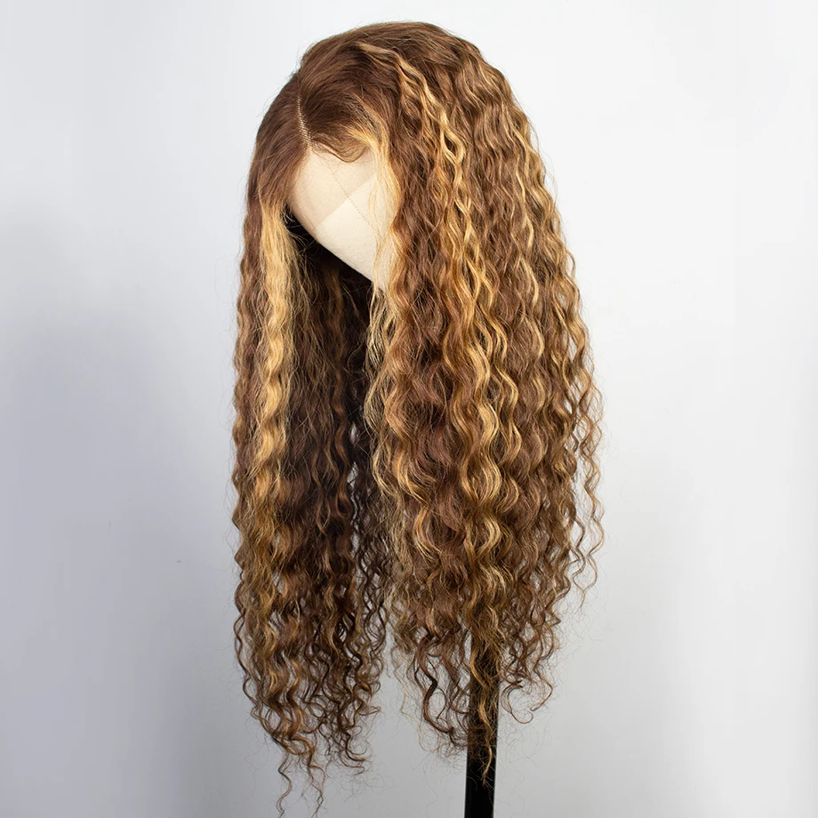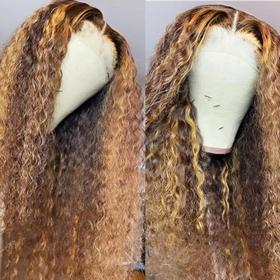 Парики из человеческих волос, подчеркивающие кудрявые цвета, парики на сетке спереди, парик на сетке спереди, бразильские волосы с глубокой волной, предварительно выщипанные для черных женщин