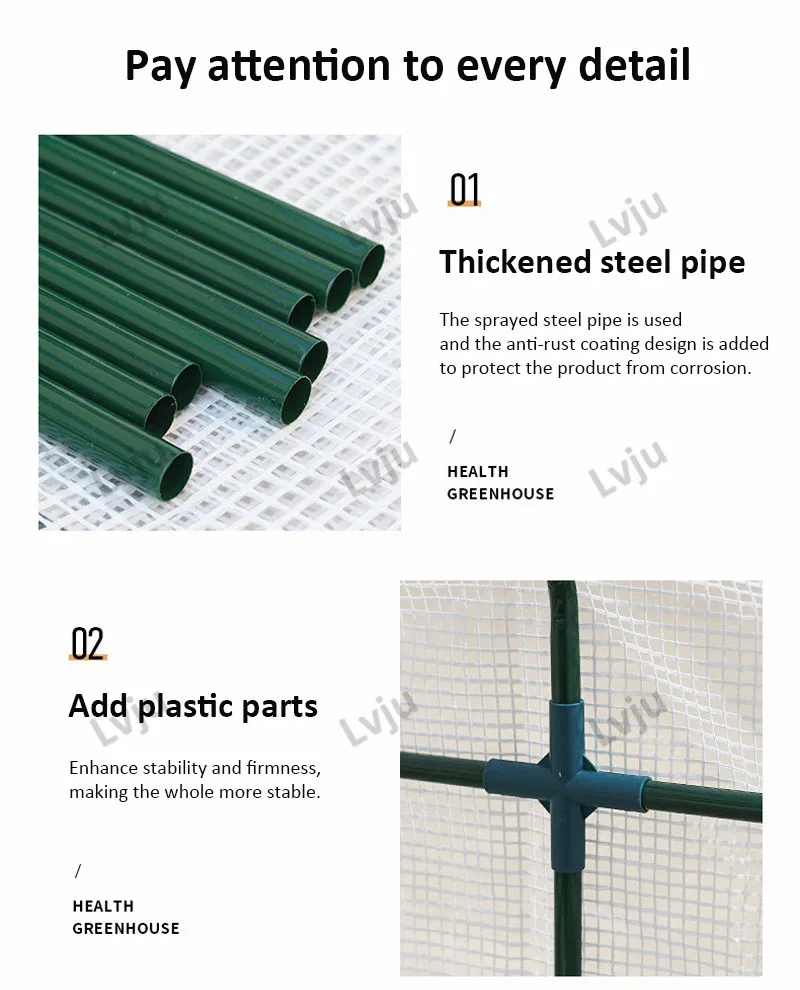1. Используя полипропиленовые материала содержит УФ-анти-старения, и затеняющая сетка принимает 6-pin затеняющая сетка материал, и уровень затемнения составляет около 90%! 2. Цветочная комната не является прецизионным механическим продуктом. Поскольку он собран вручную, каждый человек имеет различную прочность сборки и ручное измерение. Метод измерения также отличается, поэтому погрешность плюс или минус 3-5 см является нормальной. 3. Общая высота цветочного домика составляет 195 см, включая высоту шпиля, которая составляет около 40 см. 4. В соответствии с потребностями производства завода, на основе традиционной структуры одноступенчатой продукции, мы разработали еще одно окно, 4 окна, 6 окон, 8 окон или передних и задних двойных дверей для достижения конвекции воздуха и вентиляции. 5. Поскольку Цветочная комната является наружным продуктом, климатические условия варьируются от места к месту, а погода естественным образом нестабильна. Наличие цветочной комнаты не означает, что у вас есть комната с кондиционером. Все цветочные друзья должны принять соответствующие меры для предотвращения ветра и замораживания в зависимости от окружающей среды и погодных изменений в цветочной комнате. Меры по минимизации потерь. 6. Когда внешняя крышка не используется, снимите ее и Вымойте, чтобы продлить срок службы.