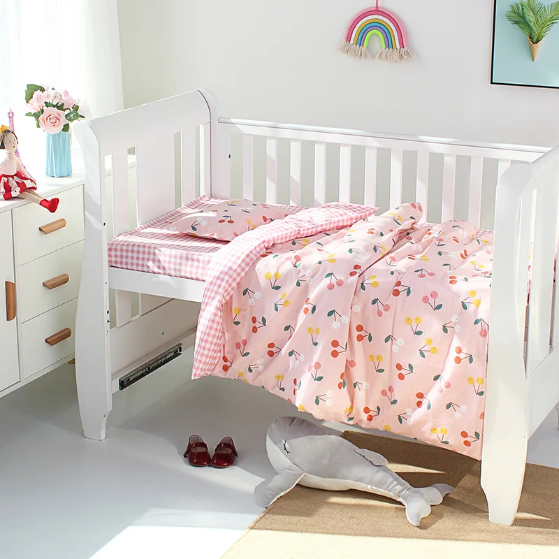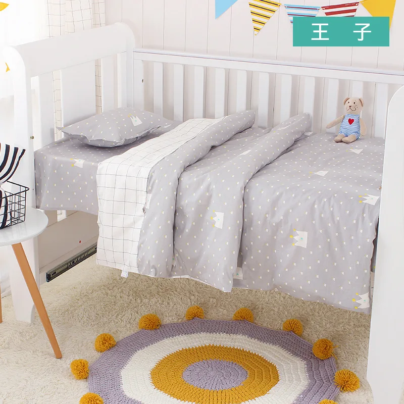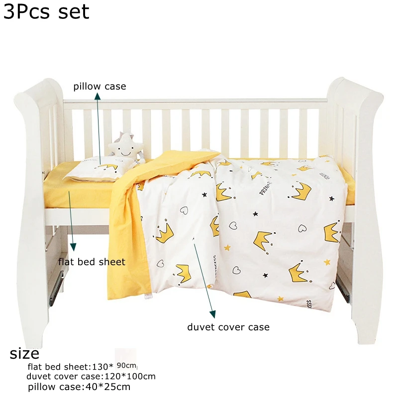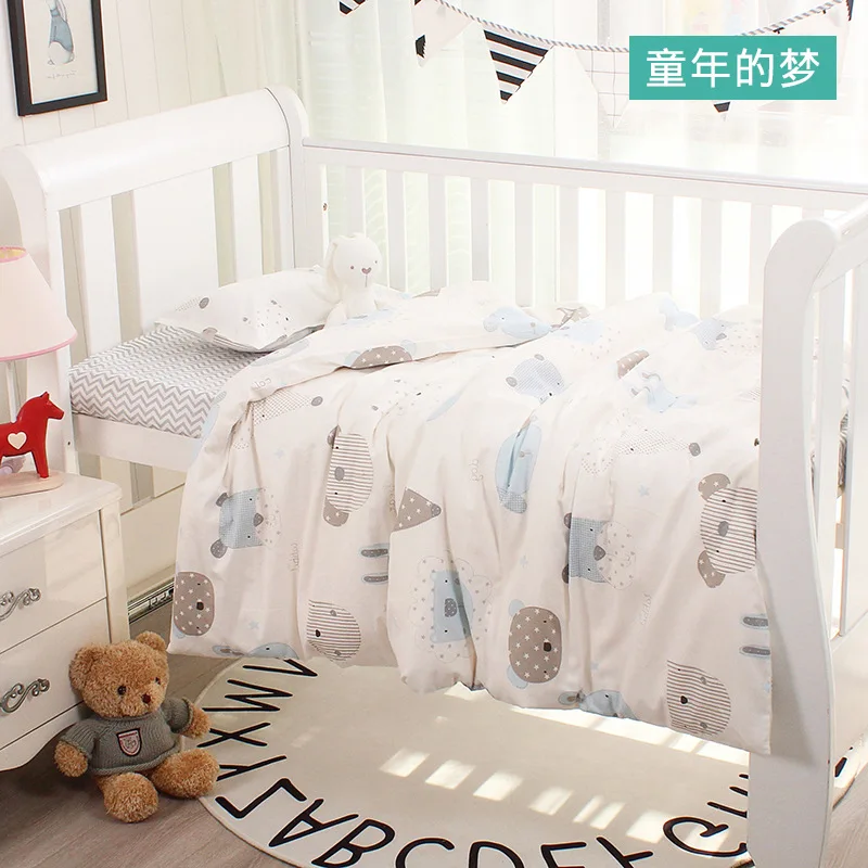 Комплект из 3 предметов для новорожденных, детская кроватка, Комплект постельного белья из хлопка с мультяшным принтом, простыни для кроватки, пододеяльник, подушка, детское постельное белье, все сезоны