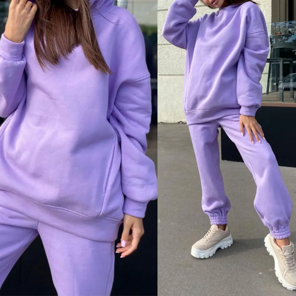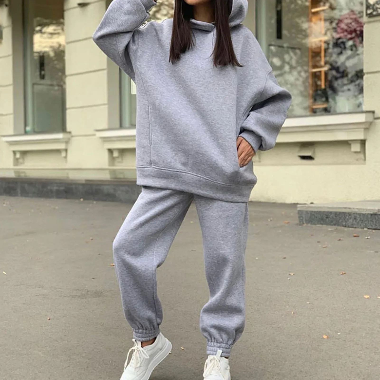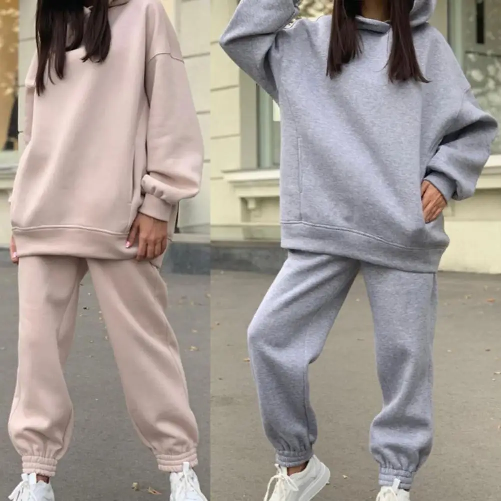 Костюм спортивный женский флисовый, утепленный, с капюшоном и штанами