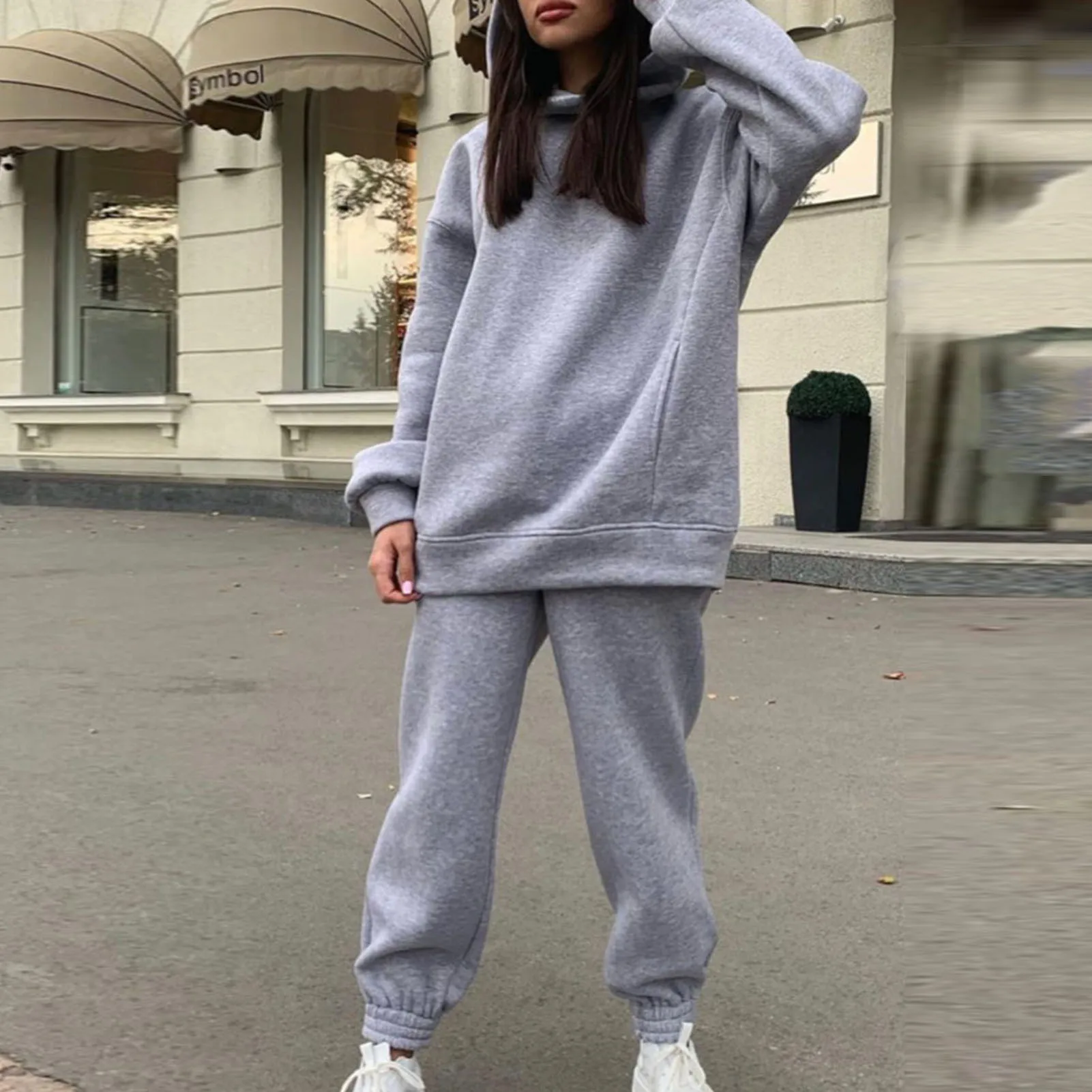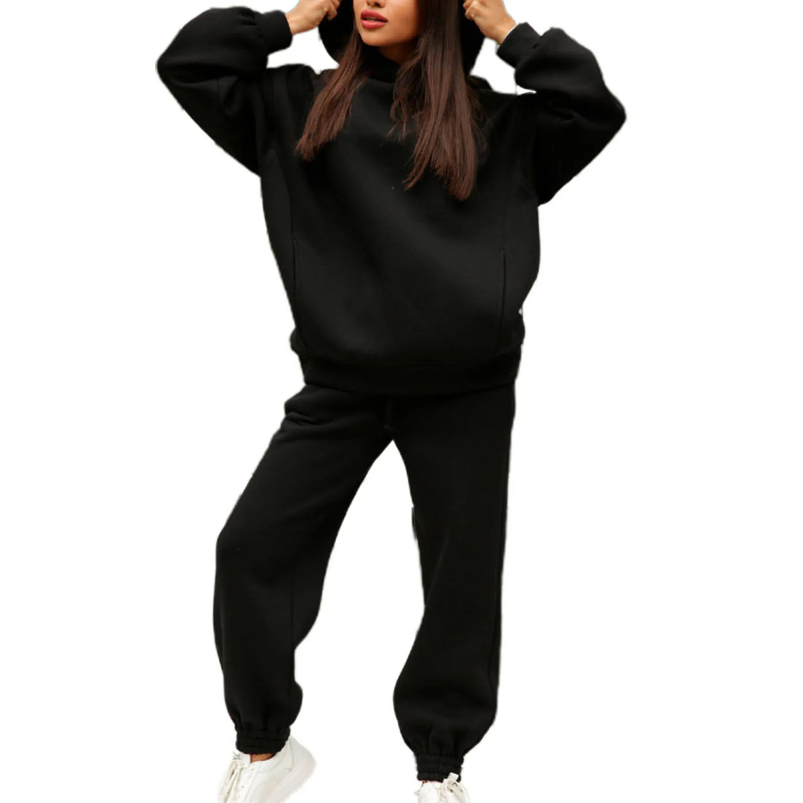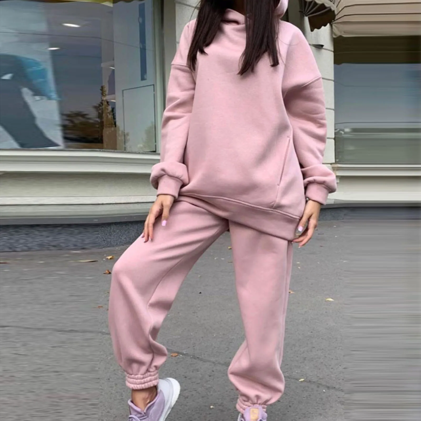 Костюм спортивный женский флисовый, утепленный, с капюшоном и штанами