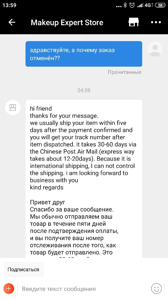 23.09 сделала заказ, 14 октября зашла проверить , и оказалось , что продавец отменил его 09 октября, без каких-либо уведомлений и пояснений . заказала то же с доставкой из России , так как мне нужны эти ёршики для ухода за брекетами. написала продавцу , получила какой-то невнятный ответ не в плане заданного. открыла спор, АлиЭкспресс сразу его решил в мою пользу . неприятный опыт
