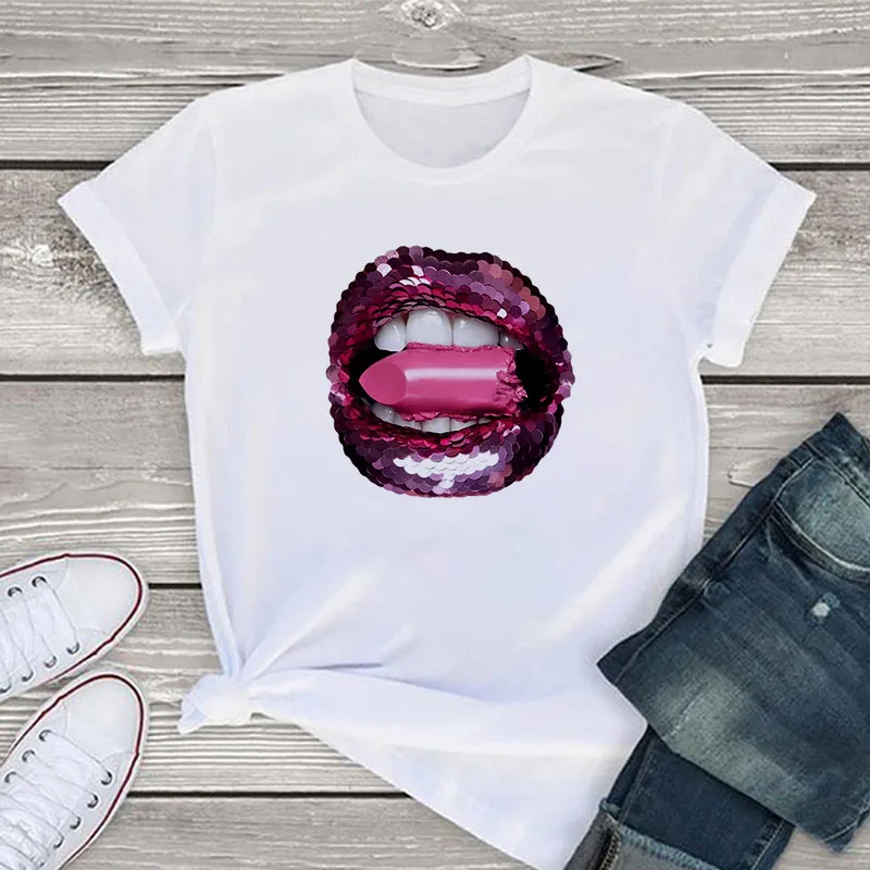 Женская футболка с принтом губ и губной помады, Женская Футболка Ha...