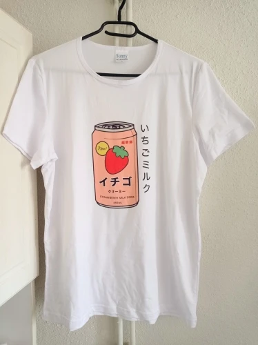 Летняя женская футболка с изображением японской клубники, молочного напитка, с короткими рукавами, Harajuku Kawaii, Топ женский
