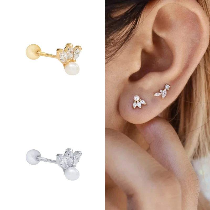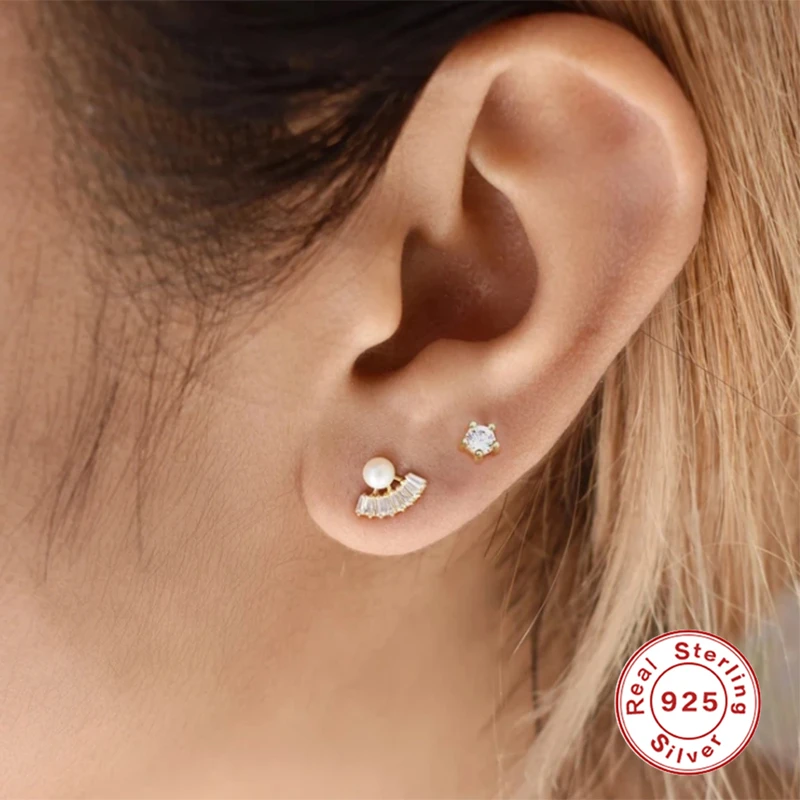 Серьги-гвоздики женские из серебра 925 пробы, с речным жемчугом