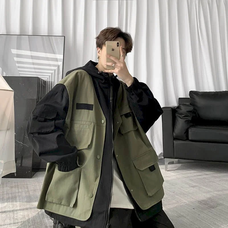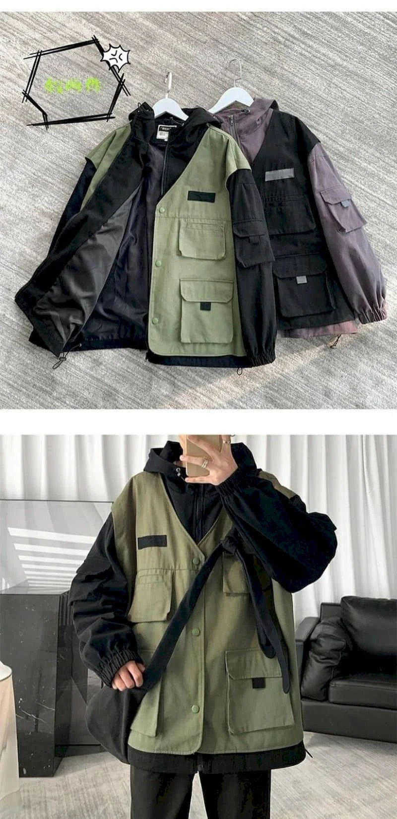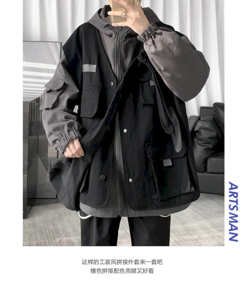 Двусторонняя куртка-карго из хлопка для мужчин и женщин, свободная ...