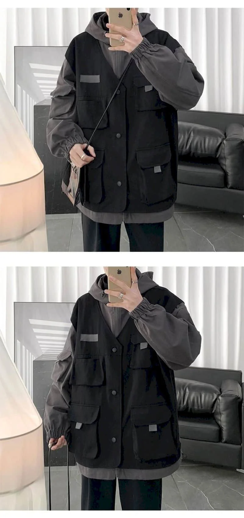 Куртка в стиле оверсайз для мужчин и женщин, простой тренд в Корейс...