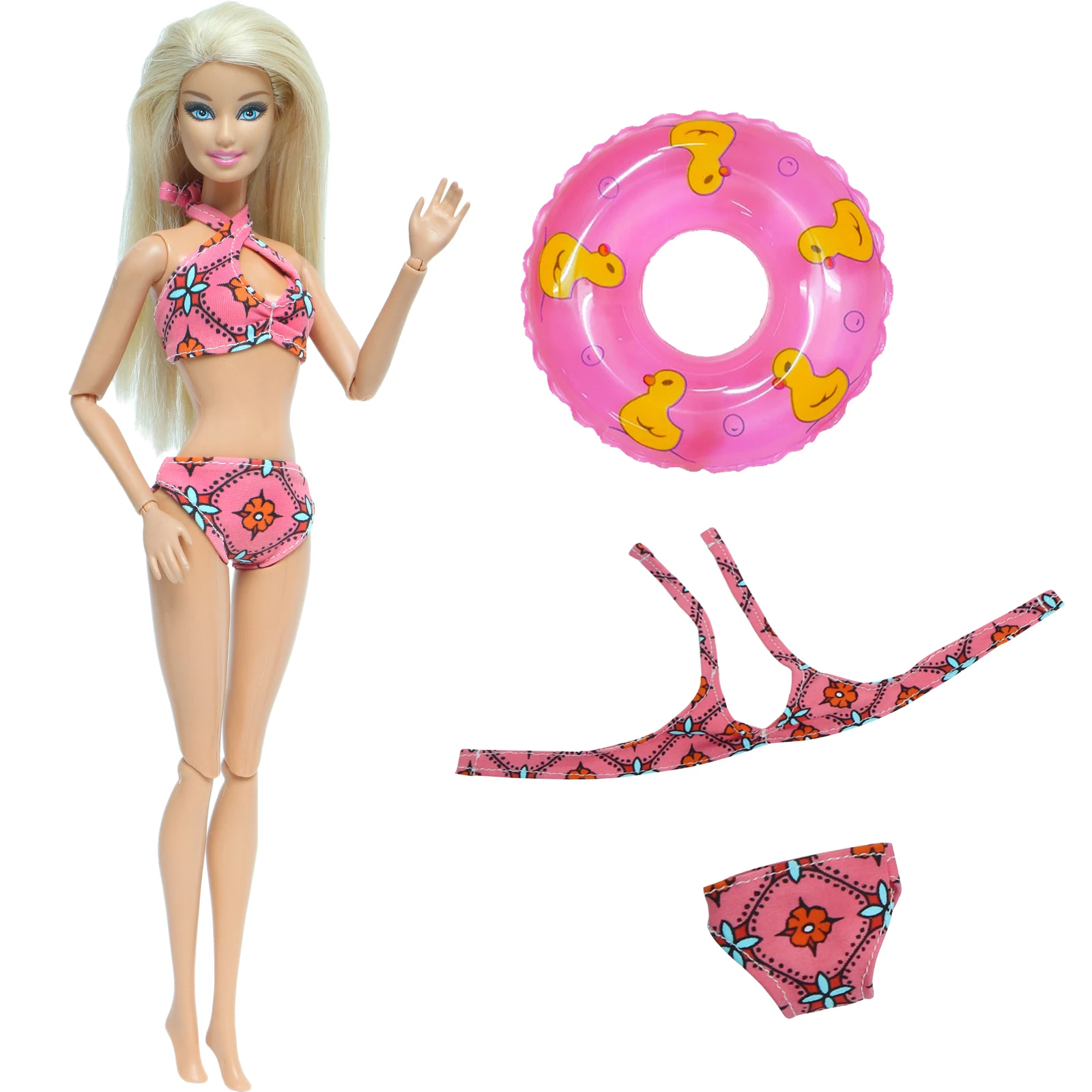 2 шт.лот = 1x цветок, летние хлопковые футболки с рисунком купальник бикини + 1x Розовый плавучий буй спасательный круг Аксессуары Одежда для куклы Барби