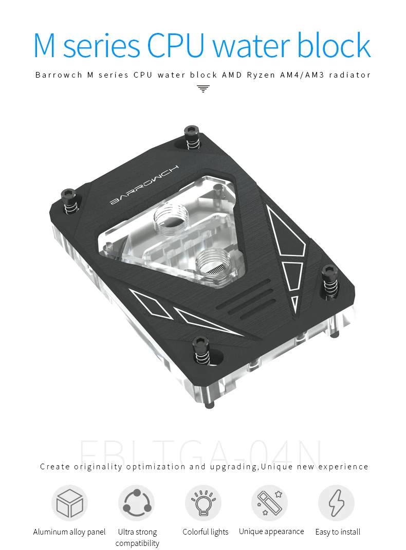 Блок водяного охлаждения процессора Barrowch серии M для AMD Ryzen AM4 AM3, механический, жидкостный охлаждающий кулер, FBLTGA-04N