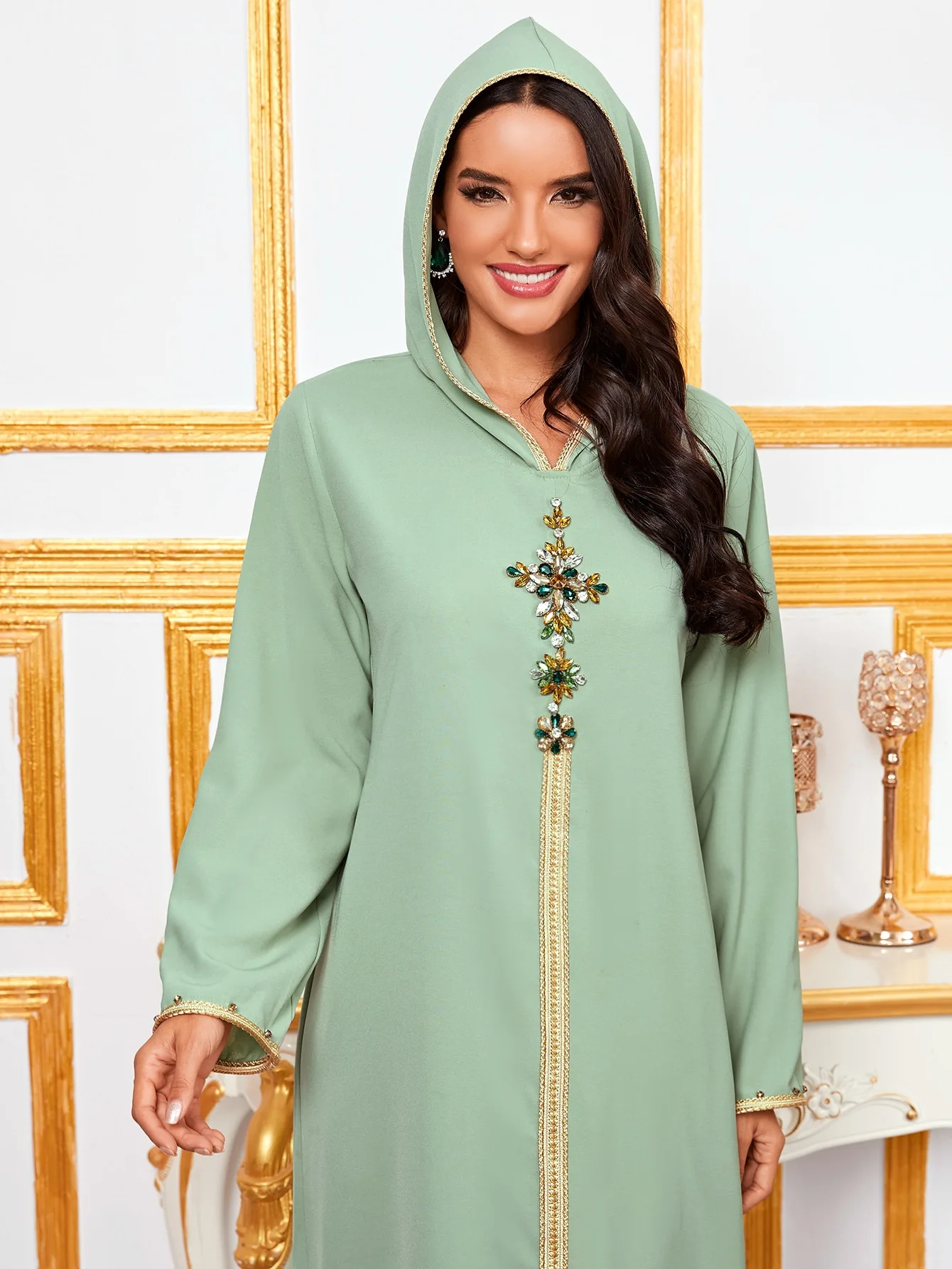 2021 модные платья, марокканский этнический длинный халат, Женский хиджаб с капюшоном, стразы, Abaya Caftan, турецкое повседневное платье, скромная одежда