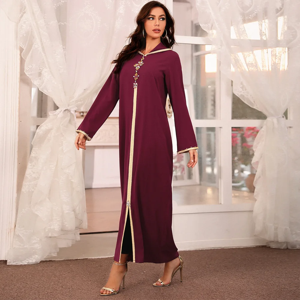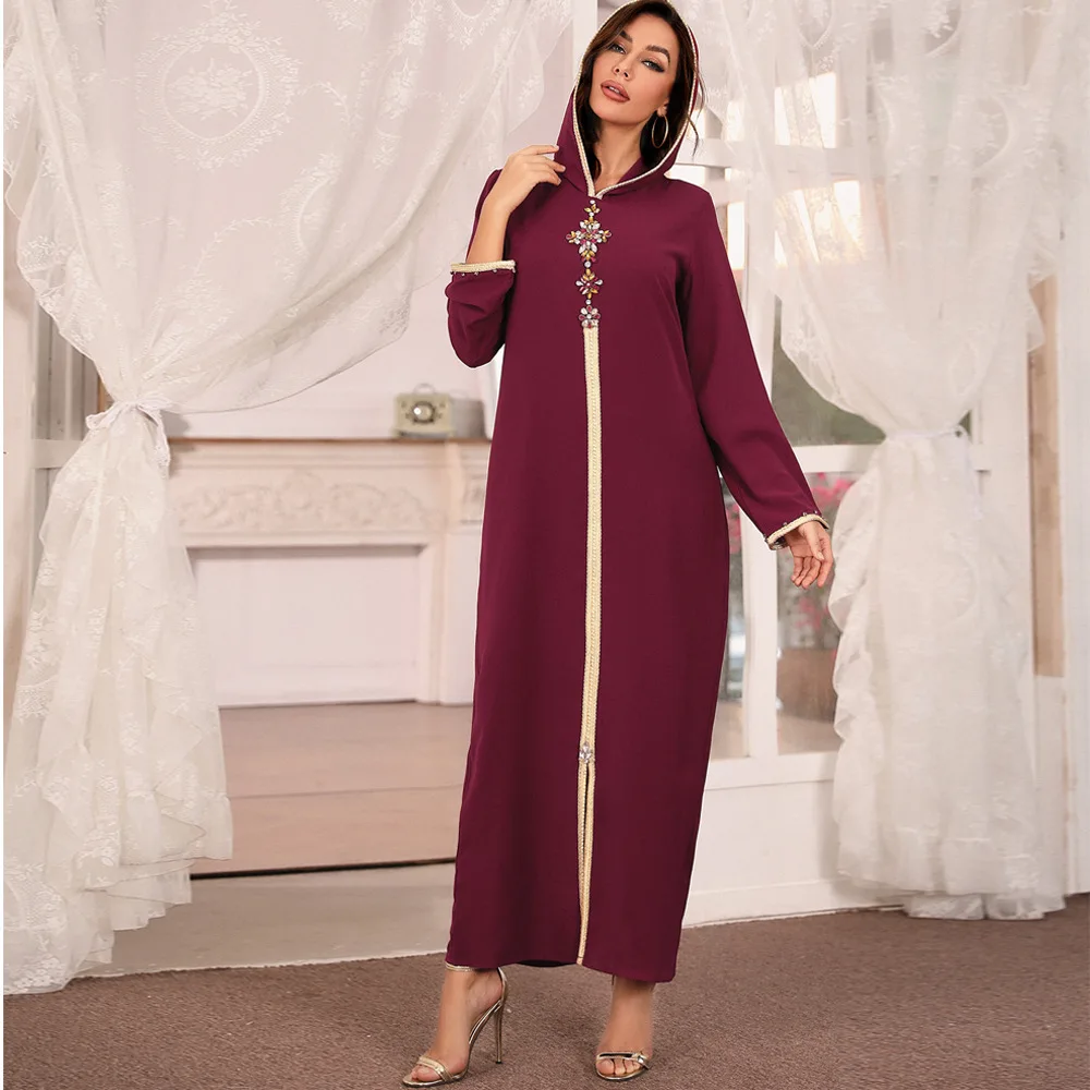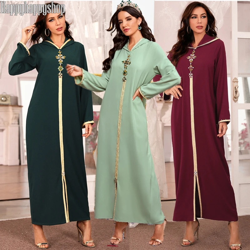 2021 Модное Длинное Платье в этническом стиле Марокко, женское хиджаб с капюшоном, стразы, абайя, Caftan, турецкое повседневное платье, скромная одеждаОписание: