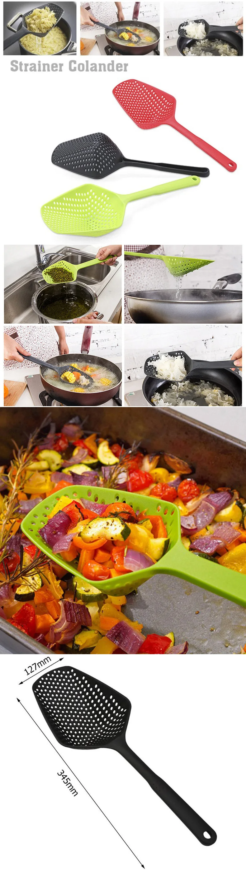 Сливный дуршлаг, кухонный фильтр, совок, лопата для слива пищи, нейлоновая шлицевая лопата с ручкой для кухни, приготовления пищи, выпечки