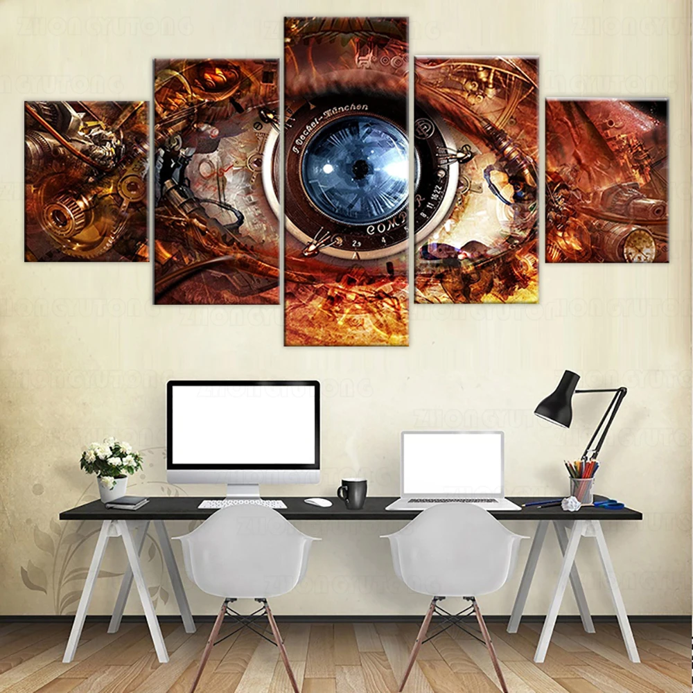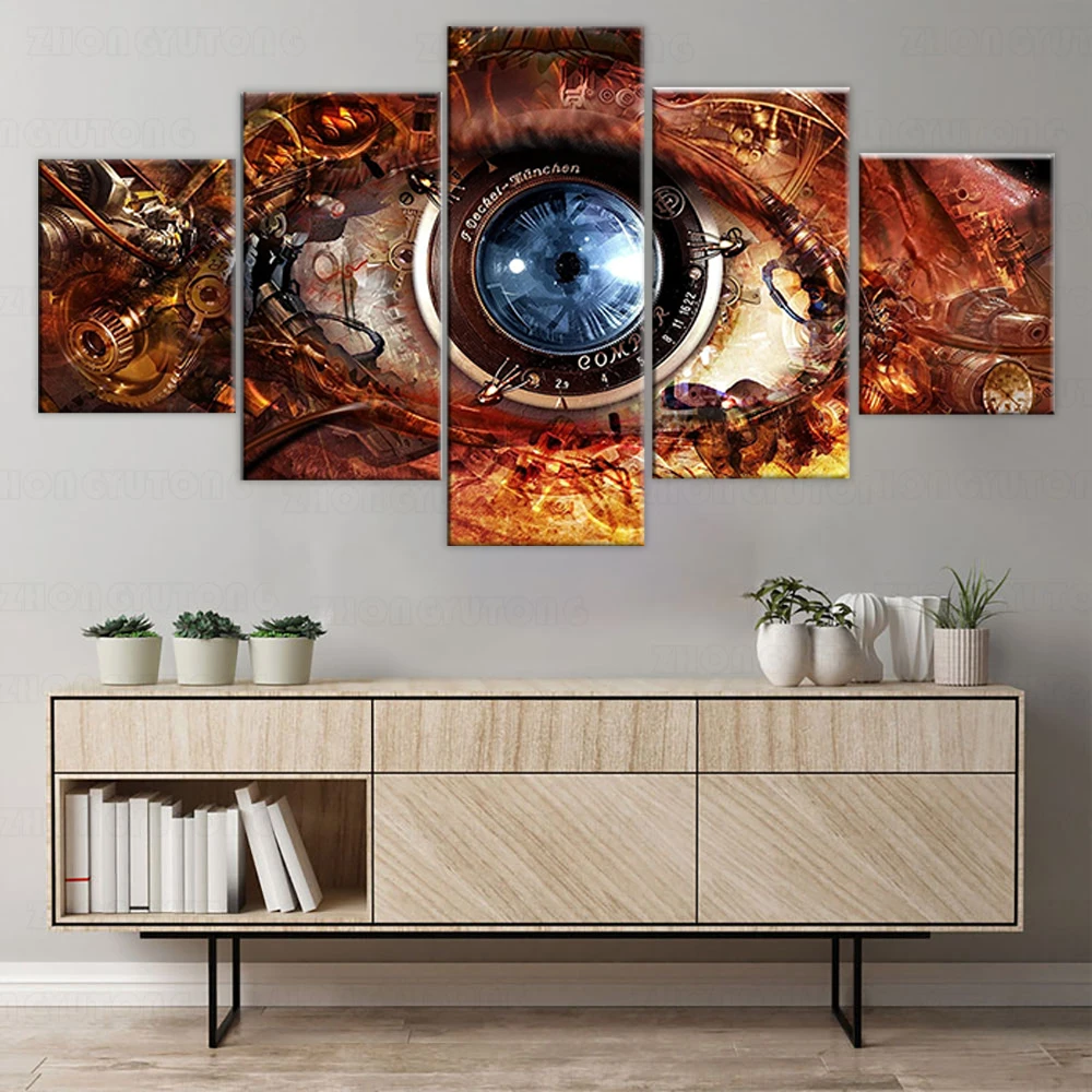 5 панелей, Современный домашний декор, Настенная картина для гостиной, стимпанк, абстрактные глаза, постер, холст, печатная живопись на холсте, Artwor