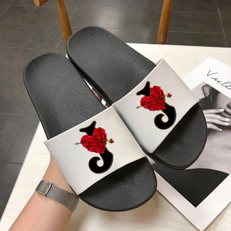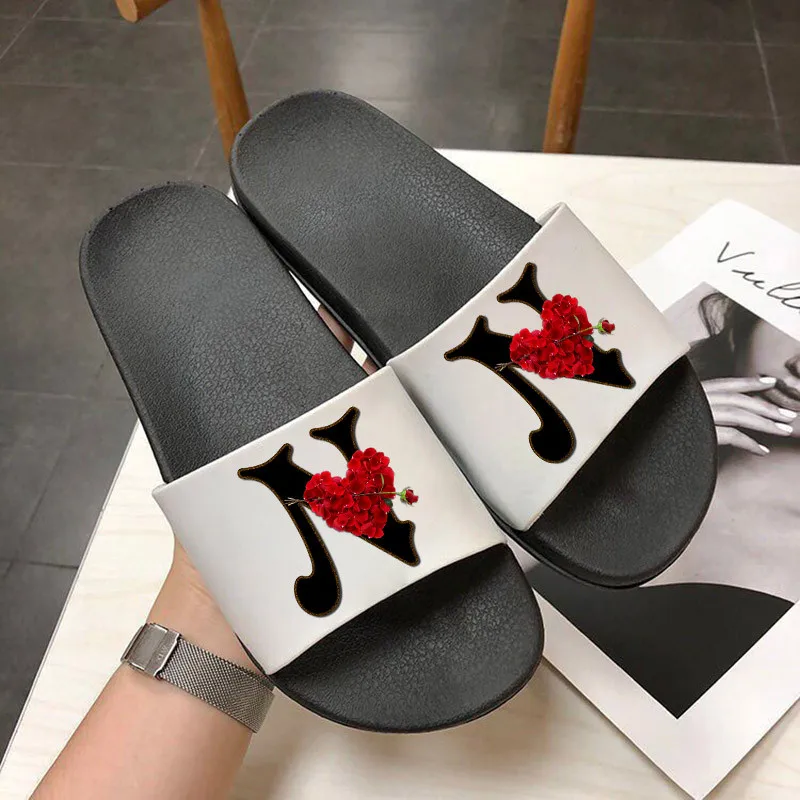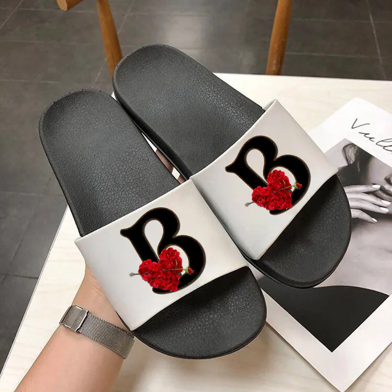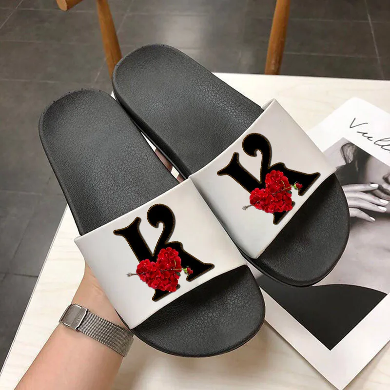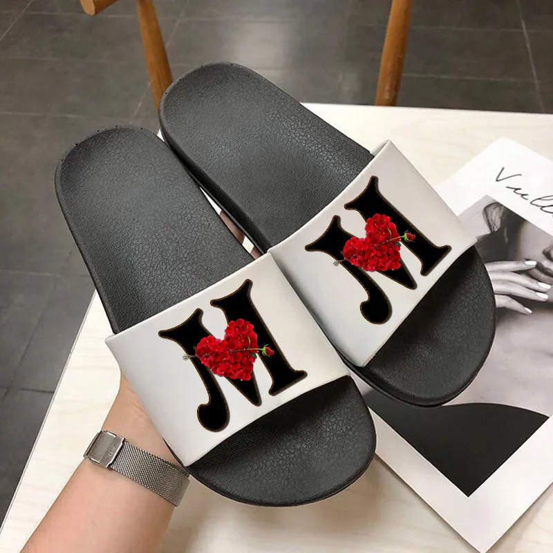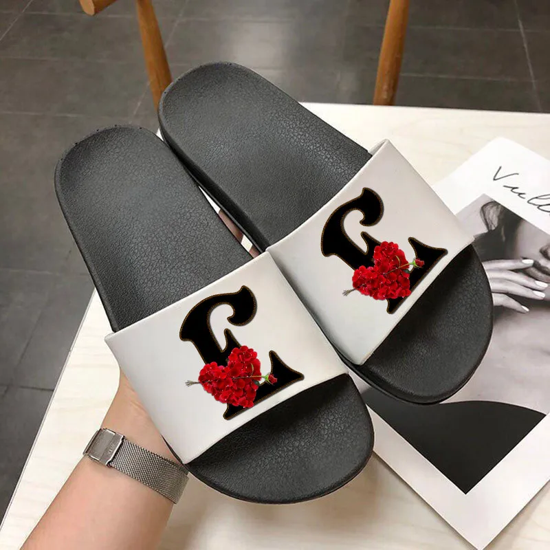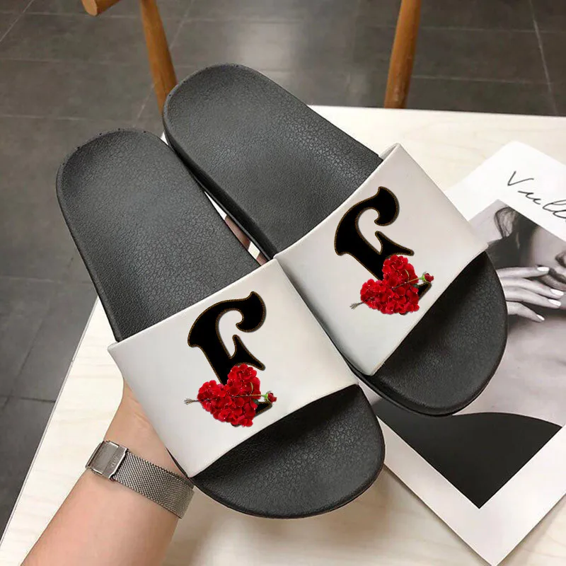 Шлепанцы женские с буквенным принтом, летние пляжные сланцы для дом...