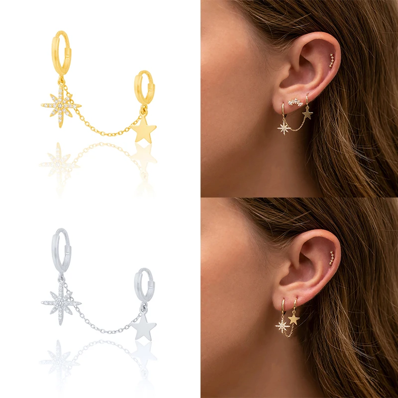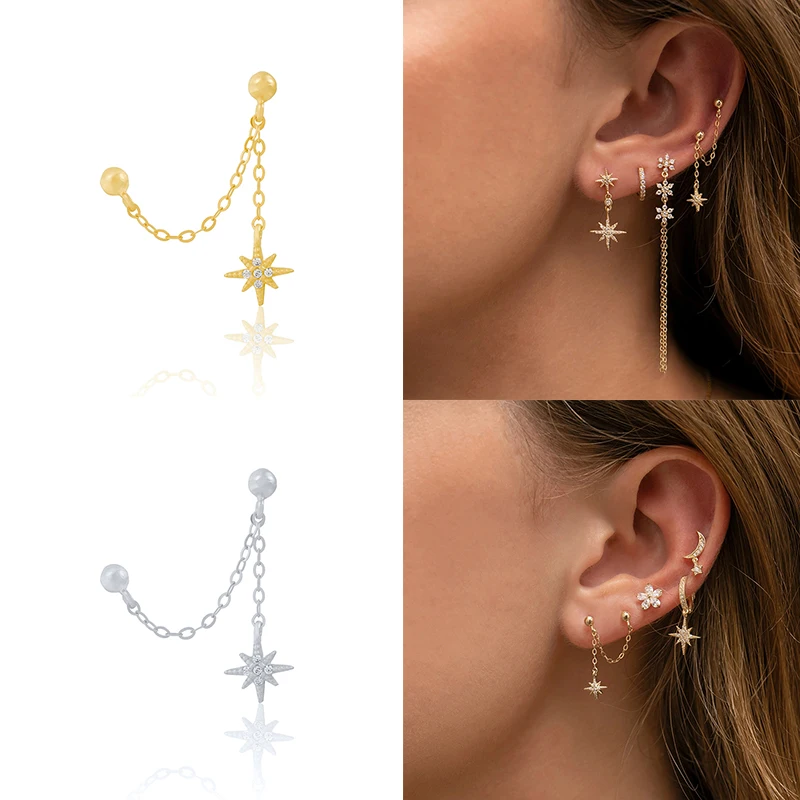 GS 100% S925 Изящные Ювелирные изделия из серебра серьги стерлингового серебра CZ циркон цепочка-type одежда звезда серьги-подвески для женщин ювелирные изделия brincos