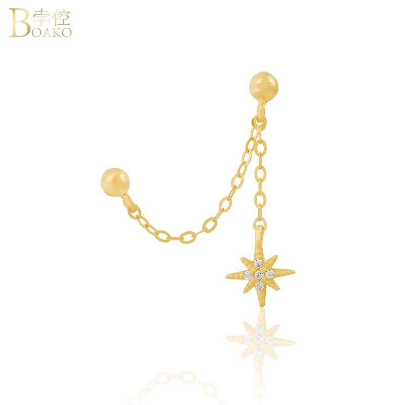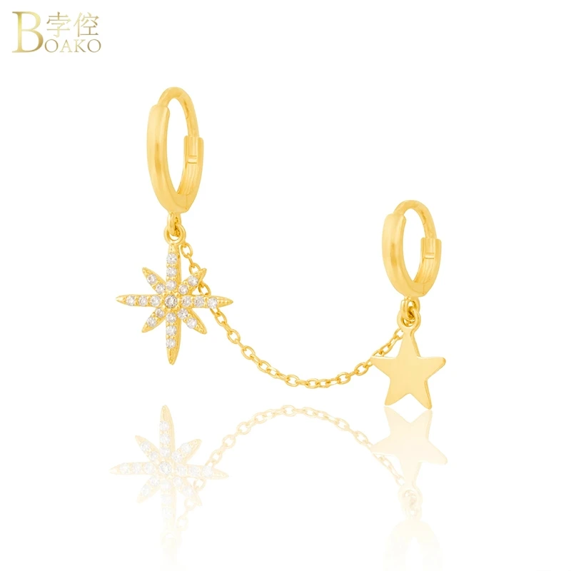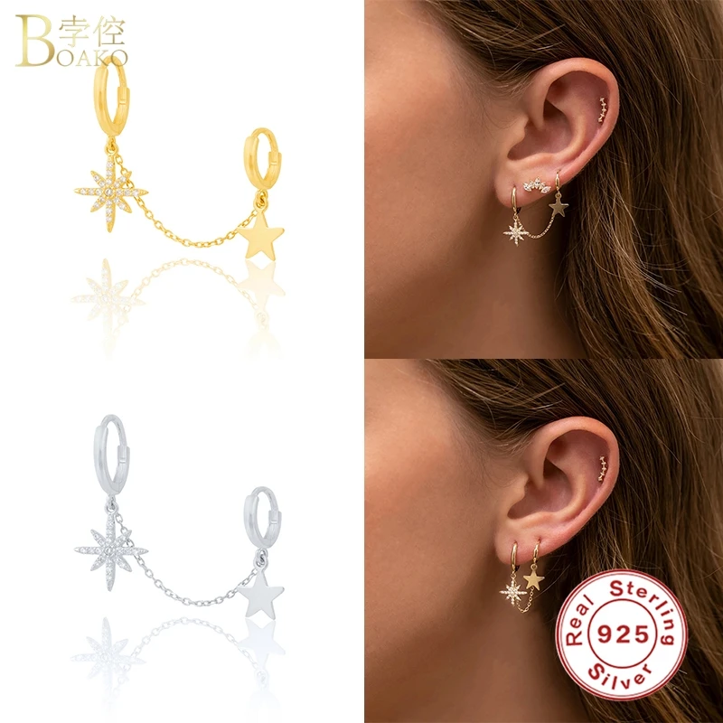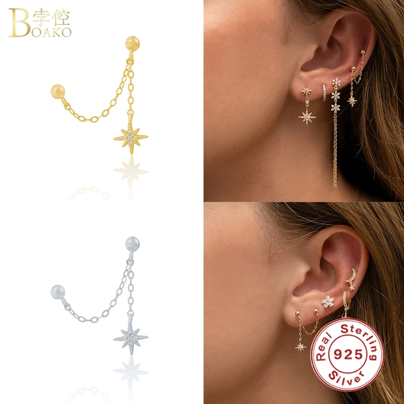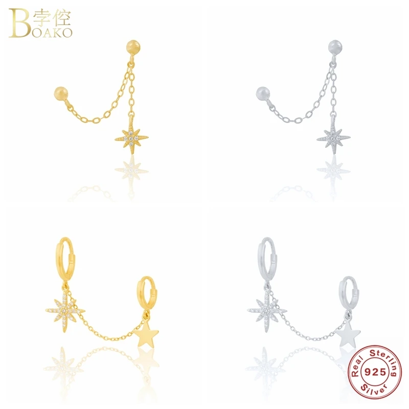 Женские серьги-гвоздики Boako, 100% Стерлинговое Серебро S925 пробы, сережки-гвоздики из циркона с двойной подвеской в виде звезды, ювелирные изделия
