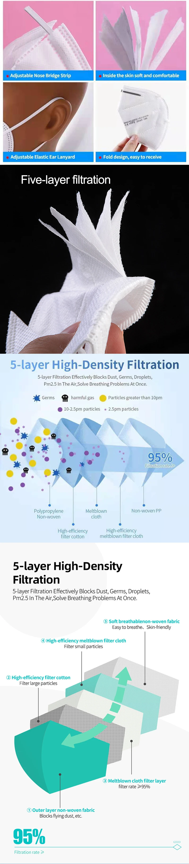 5-слойная маска для лица KN 95, респиратор FPP2 CE, защитные маски ...