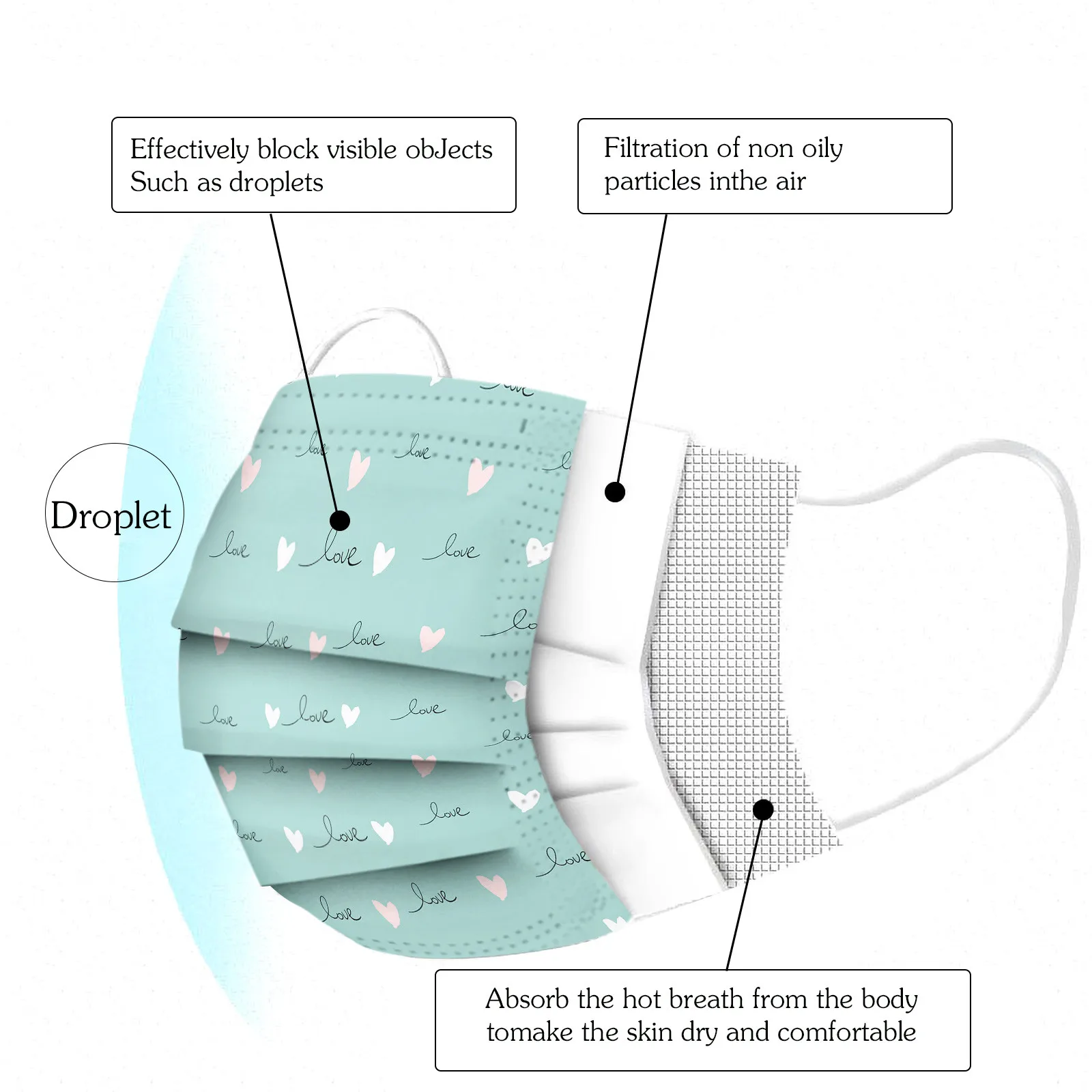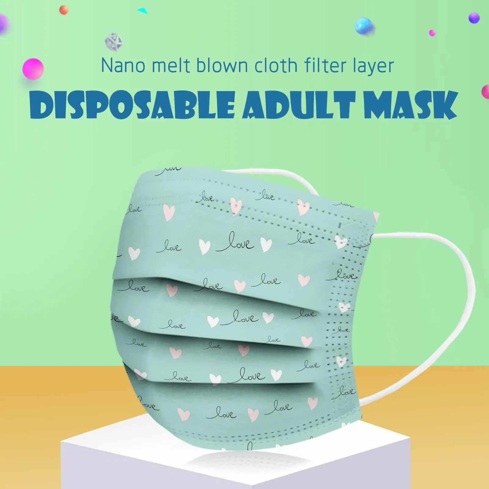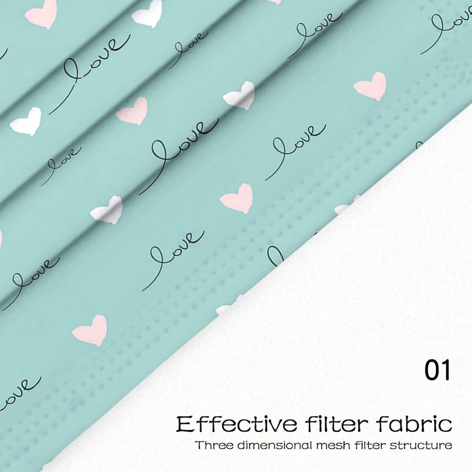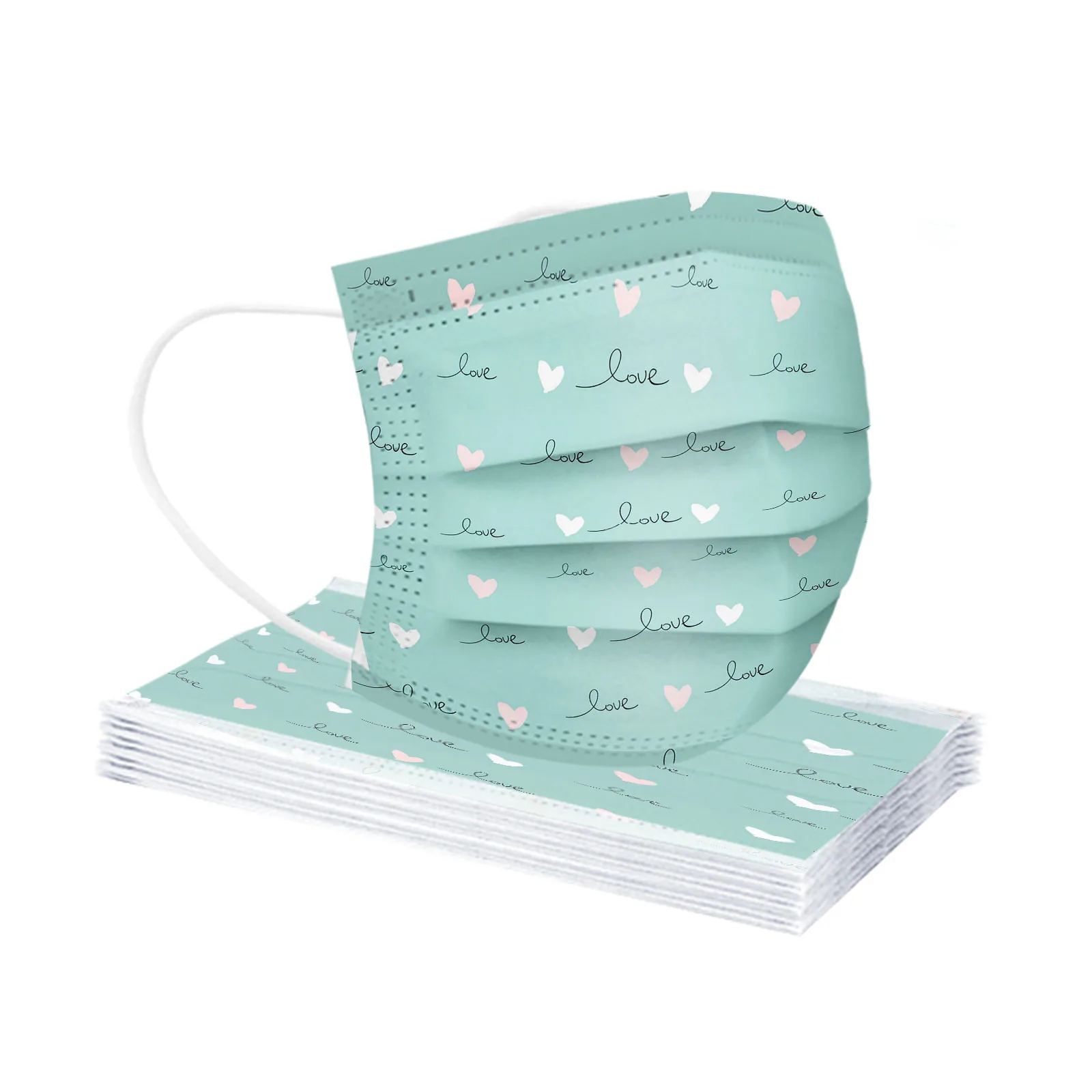 Маски одноразовые дышащие с принтом сердца, унисекс, 10 шт.