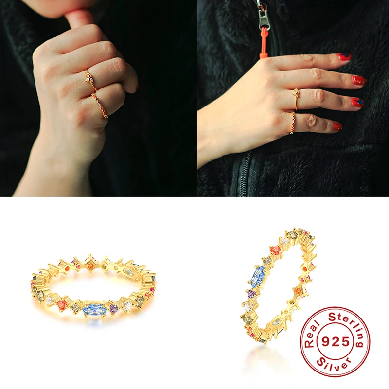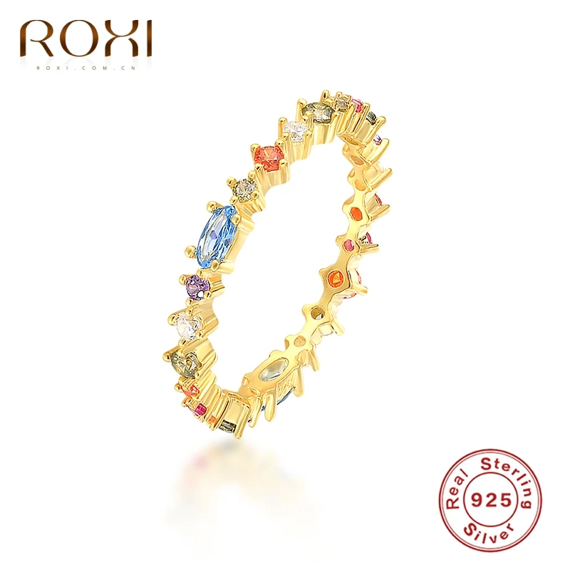 ROXI Радуга пальто неправильной формы кристаллами золотые кольца для женщин обручальное кольцо 925 стерлингового серебра палец кольцо Anillos ювелирные Bague
