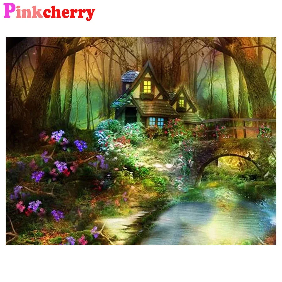 Алмазная вышивка сделай сам, лес, Сказочный Дом, пейзаж, алмазная живопись, стразы, Алмазная мозаика, вышивка крестиком, декор детской комнаты,