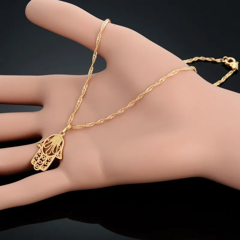 Классический рука Хамса от Фатимы, шарм, подвеска, колье для женщин, Настоящее золото Цвет ладони удлиненные чокеры, воротниковые ювелирные колье Femme; Прямая поставка