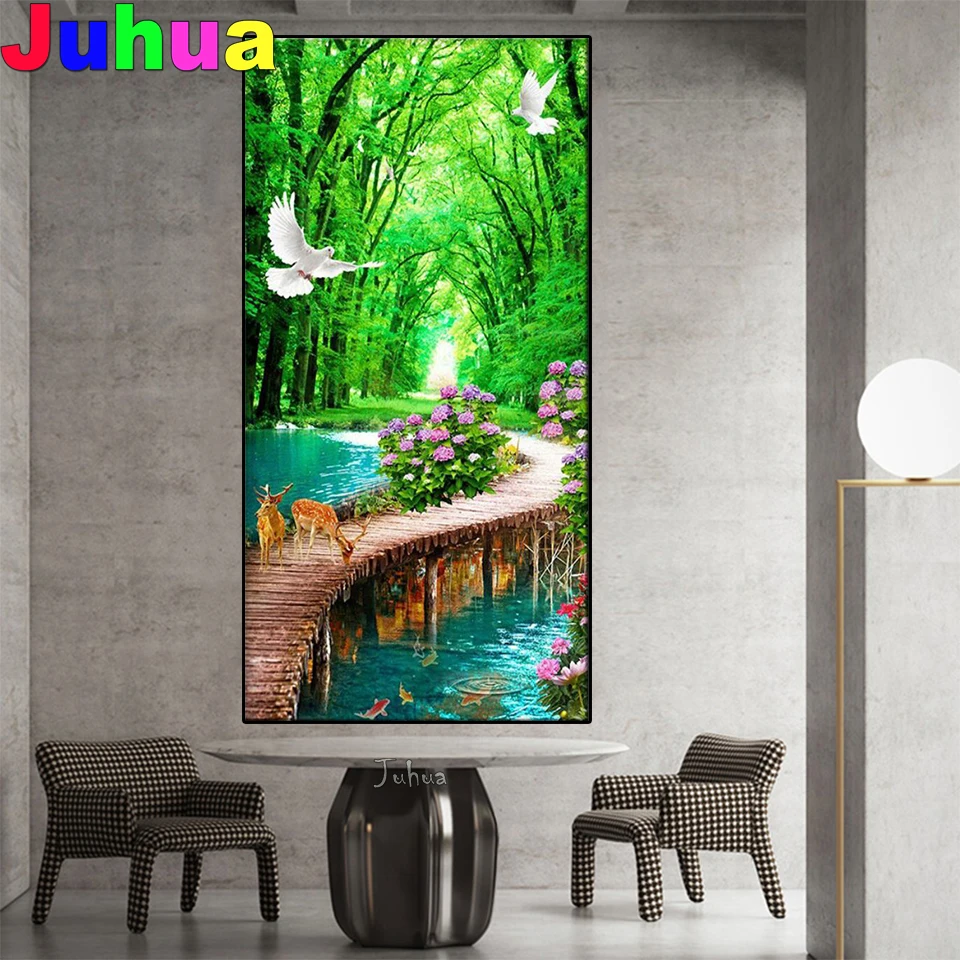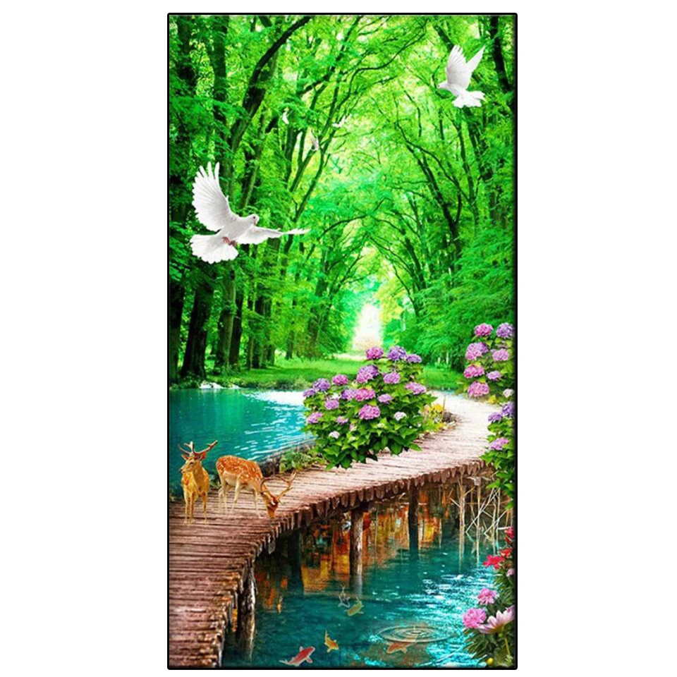 Diy 5d большая Алмазная мозаика натуральный пейзаж, картина, выложенная алмазами водопад олень вышивка крестиком 3d вышивка полная круглая дрель для дома