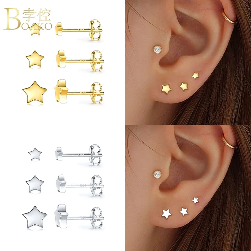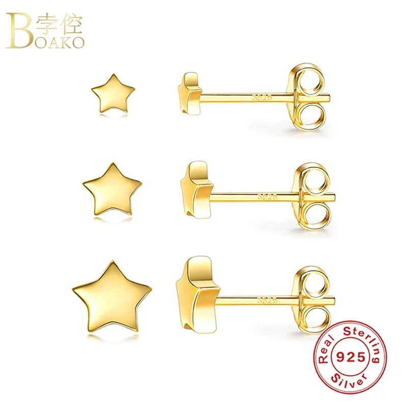 Женские серьги-гвоздики BOAKO со звездами из стерлингового серебра 925 пробы, Роскошные ювелирные украшения в подарок