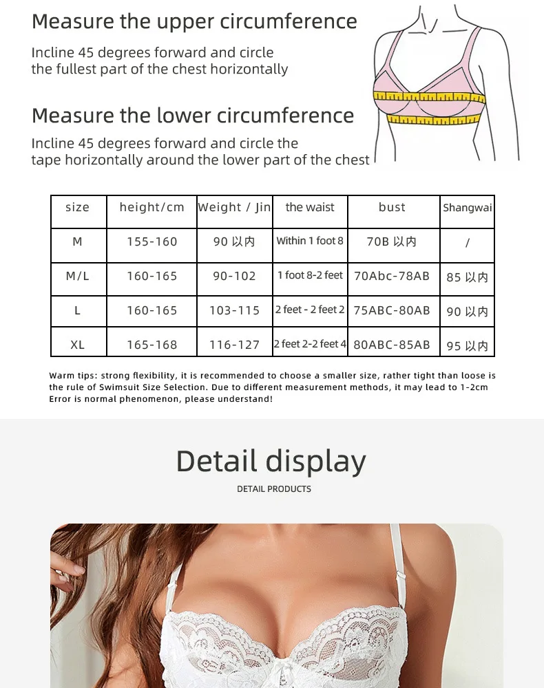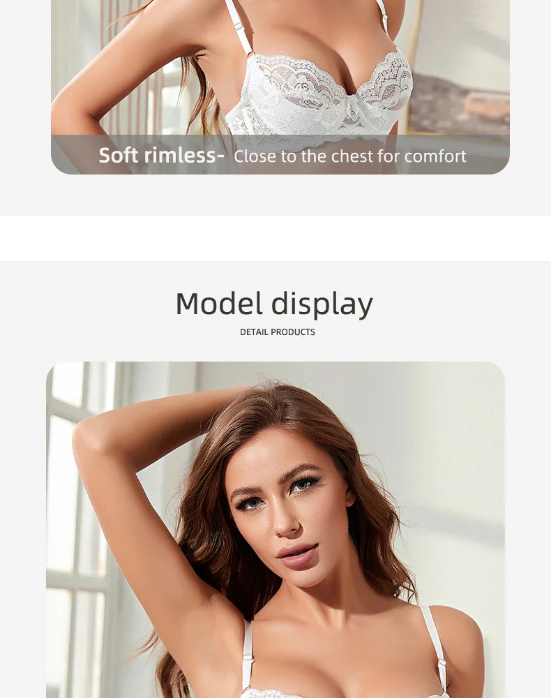 Нежнейший бюстгальтер превосходного качества. Такое качество в магазинах города куда дороже обходится, честное слово. Бюстгальтер представлен в черном и белом цветах. Мы взяли белый. Размерный ряд небольшой, всего 4 варианта. Нами был выбран 85B. На бюст 98 см и размер под бюстом 80 см отлично подошел. В целом бюстгальтер практически прозрачный. Все кругом кружевное. Кружево, кстати, очень мягкое и нежное. Имеет небольшое растяжение. Чашечки укреплены в нижней части вставками из очень тонкого поролона. Брительки регулируются. Застежка на два крючка в трех положениях. Для небольшой груди очень красивый и интересный вариант. Поддержка достаточная.