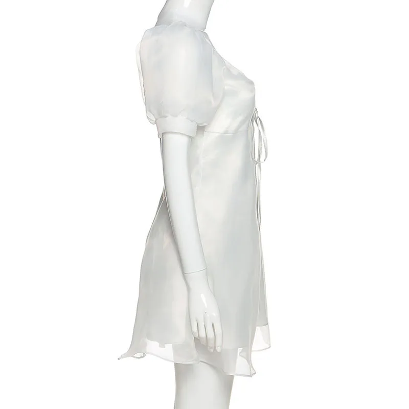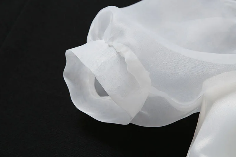 Атласное платье-мини с квадратным вырезом и рукавами-фонариками, 2021