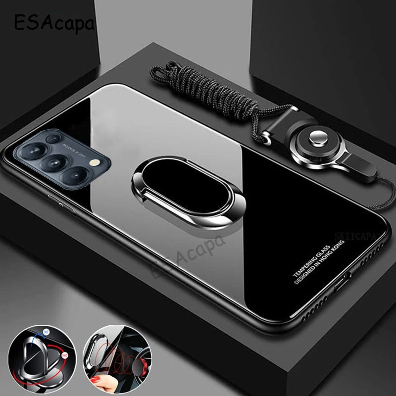 Для OPPO Reno 5 Pro 5G чехол из закаленного стекла магнит кольцо держатель подставка чехол для телефона чехол для OPPO Reno 5 мягкая рамка задняя крышка