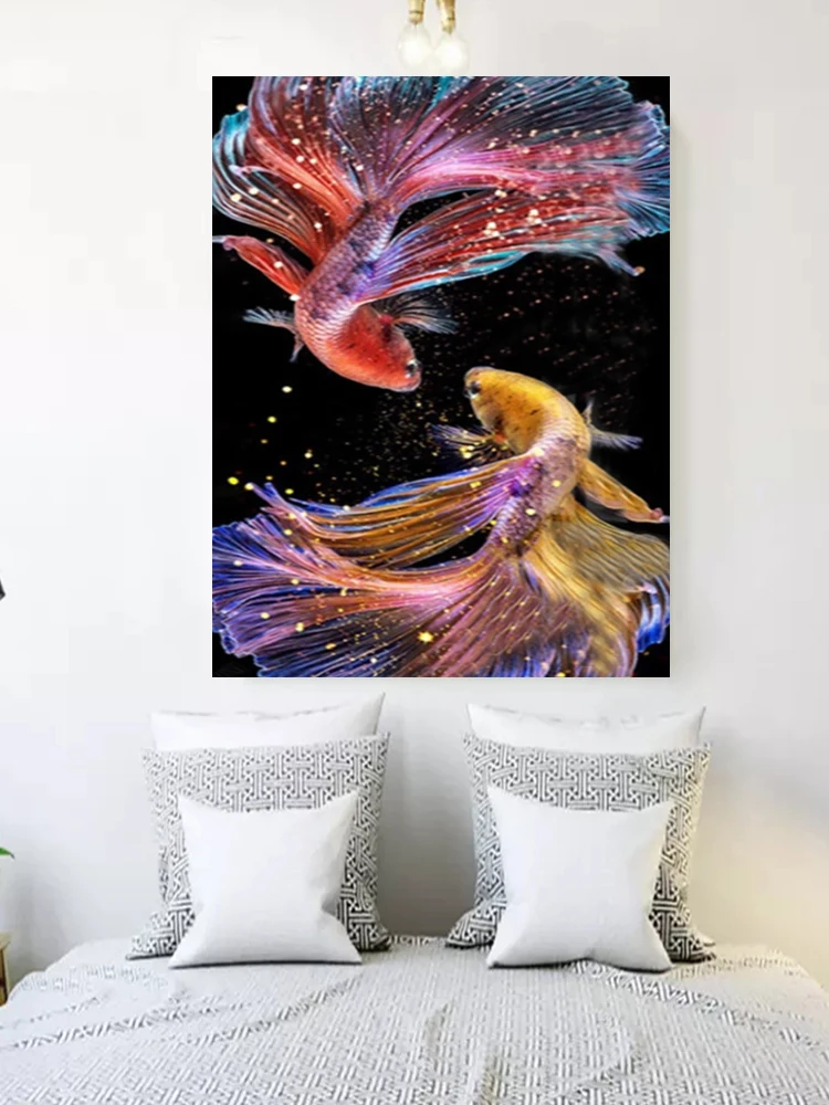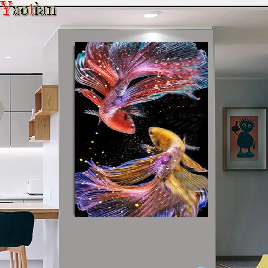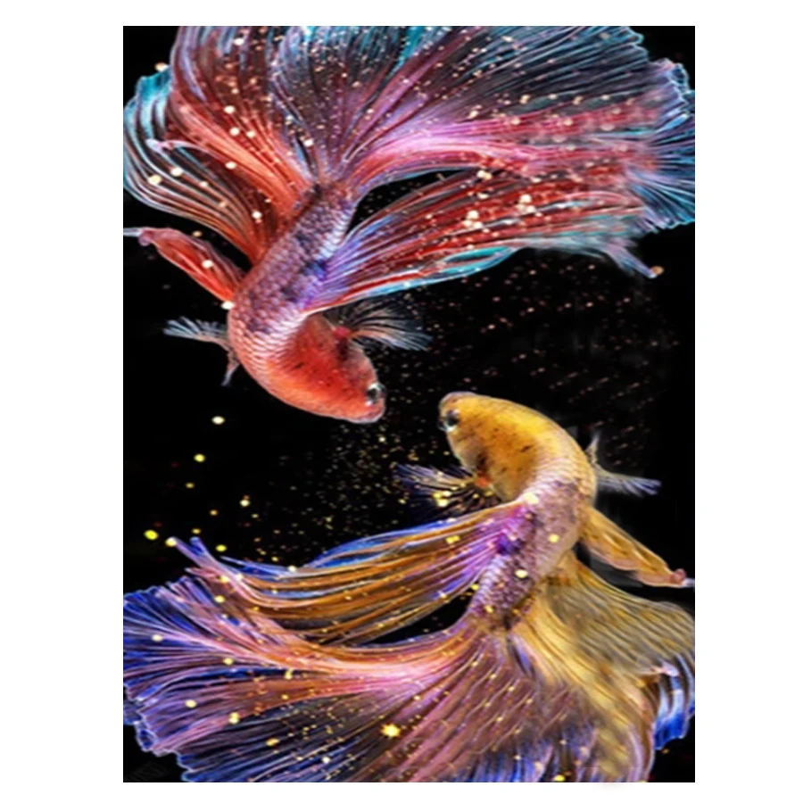 Алмазная 5D картина сделай сам, алмазная вышивка, золотая рыбка, пара стразы, мозаика, рыбки, цвет, животное, Набор для вышивки крестиком, ручная работа, подарок
