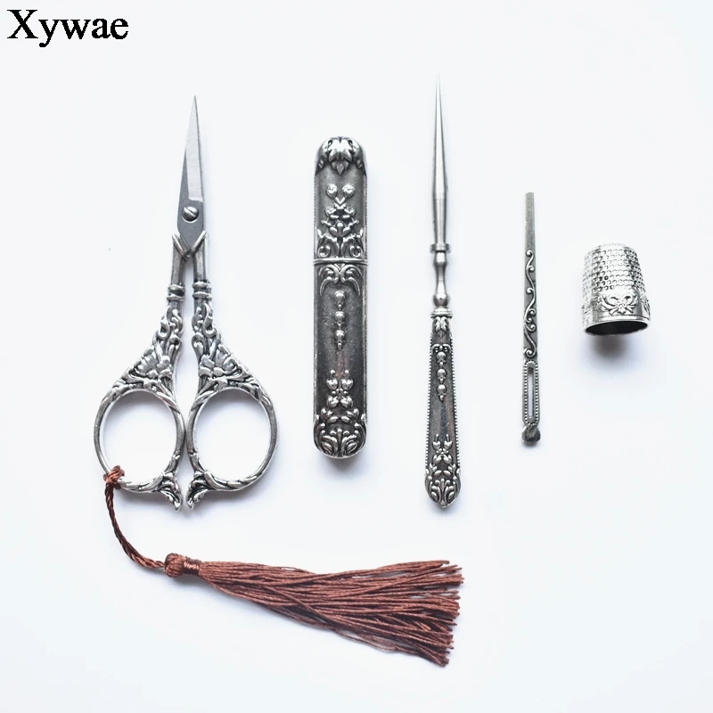 Ретро ножницы винтажные ножницы Awl + Threader + Thimble Ножницы дл...