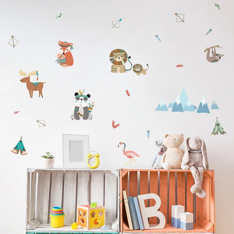 29 шт.компл. Забавный Животные индийского племени наклейки на стену с рисунком Совы дизайнерский чехол с изображением Льва медведя наклейки в виде Лис для детских комнат дома Декор Настенная роспись Fun Life