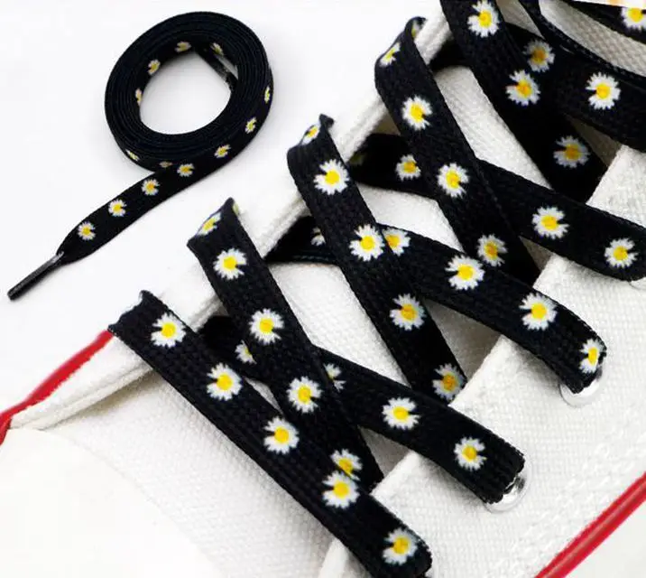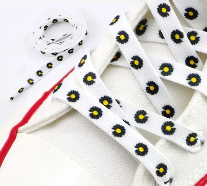 Шнурки для обуви с маленькими маргаритками и мультяшным принтом, модные плоские шнурки унисекс для обуви с высоким верхом, холщовые шнурки для кроссовок, спортивные шнурки AF1