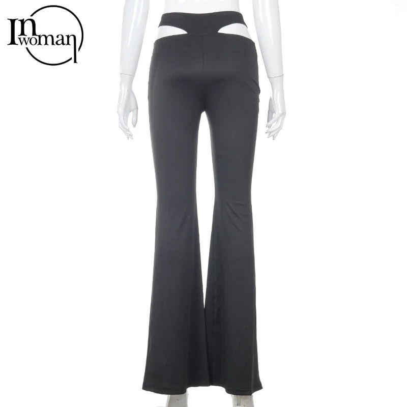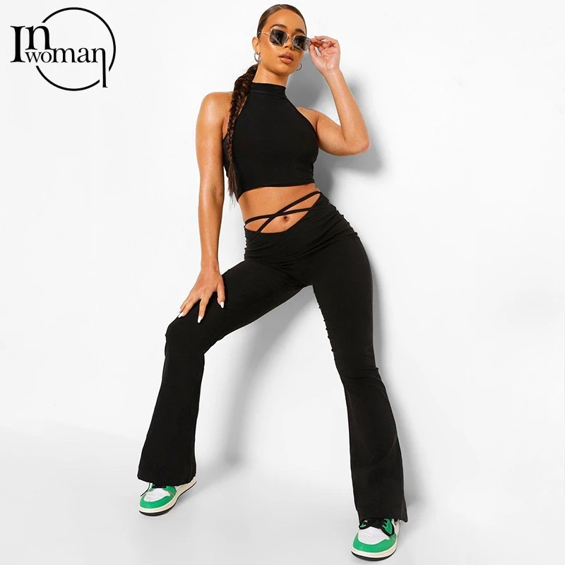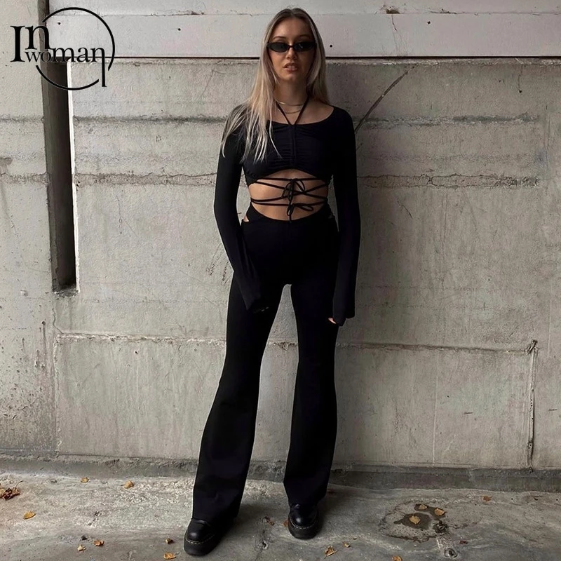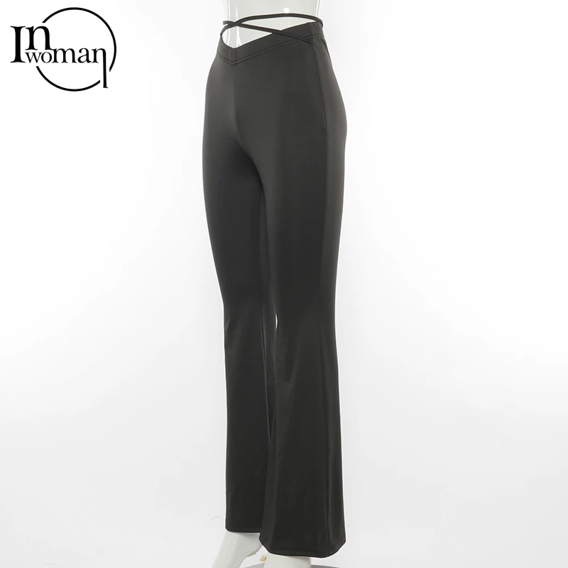 Брюки-клеш Женские черные, со шнуровкой и высокой талией, 2021