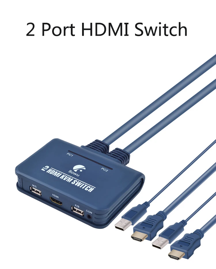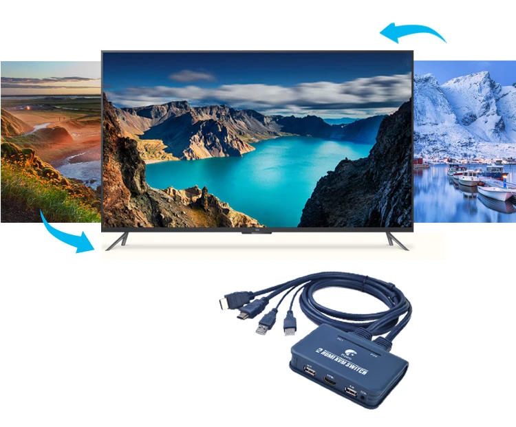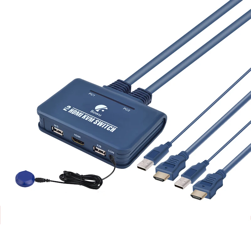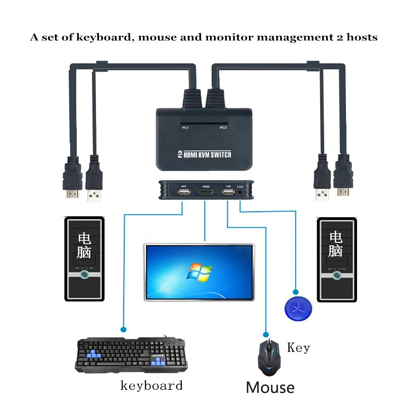 KVM-коммутатор с кабелем, поддержка нескольких систем, два компьютера, общий набор клавиатуры, мыши, дисплеи, 2 порта, Преобразователи HDMI