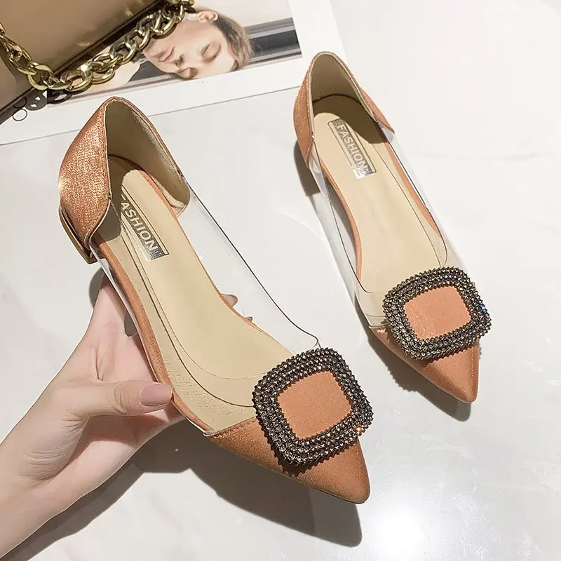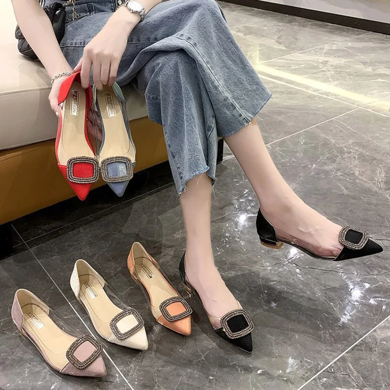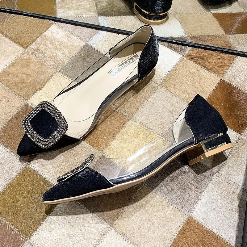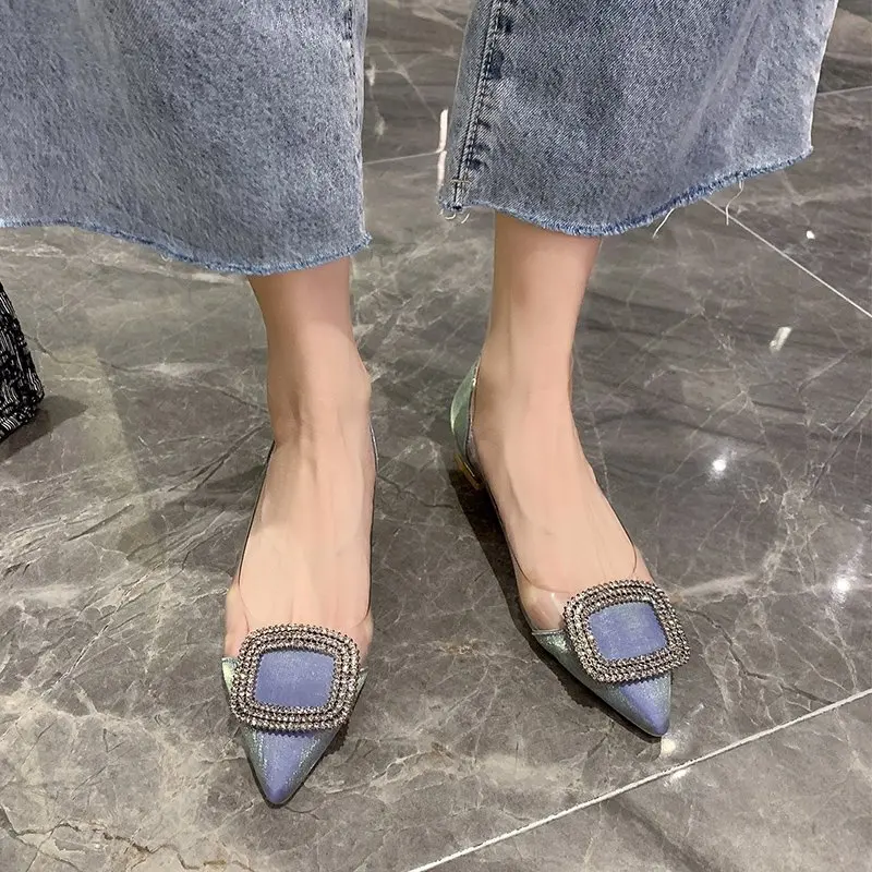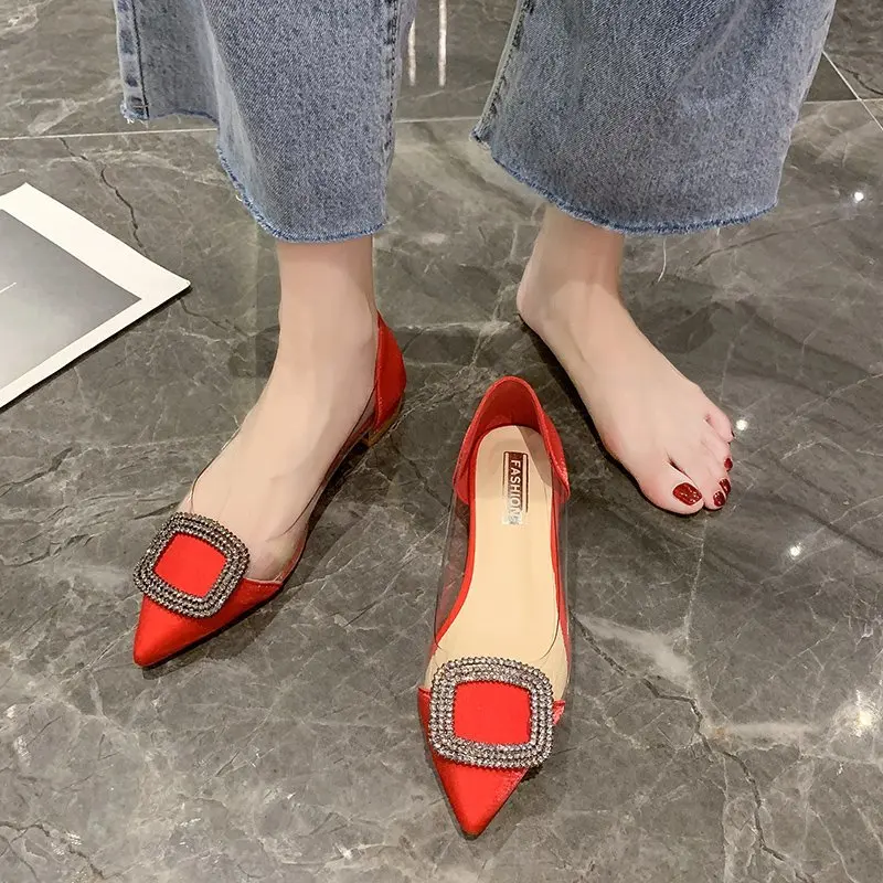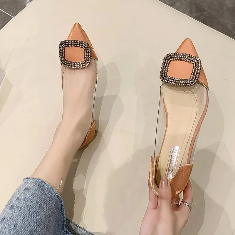 Женские туфли на плоской подошве с острым носком; Новинка 2021 года; Прозрачные слипоны со стразами; zapatos mujer; Размера плюс 41; 8921N