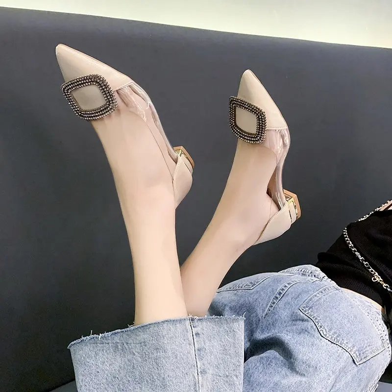 Шлепанцы женские на каблуке средней высоты, пикантные сандалии с кр...