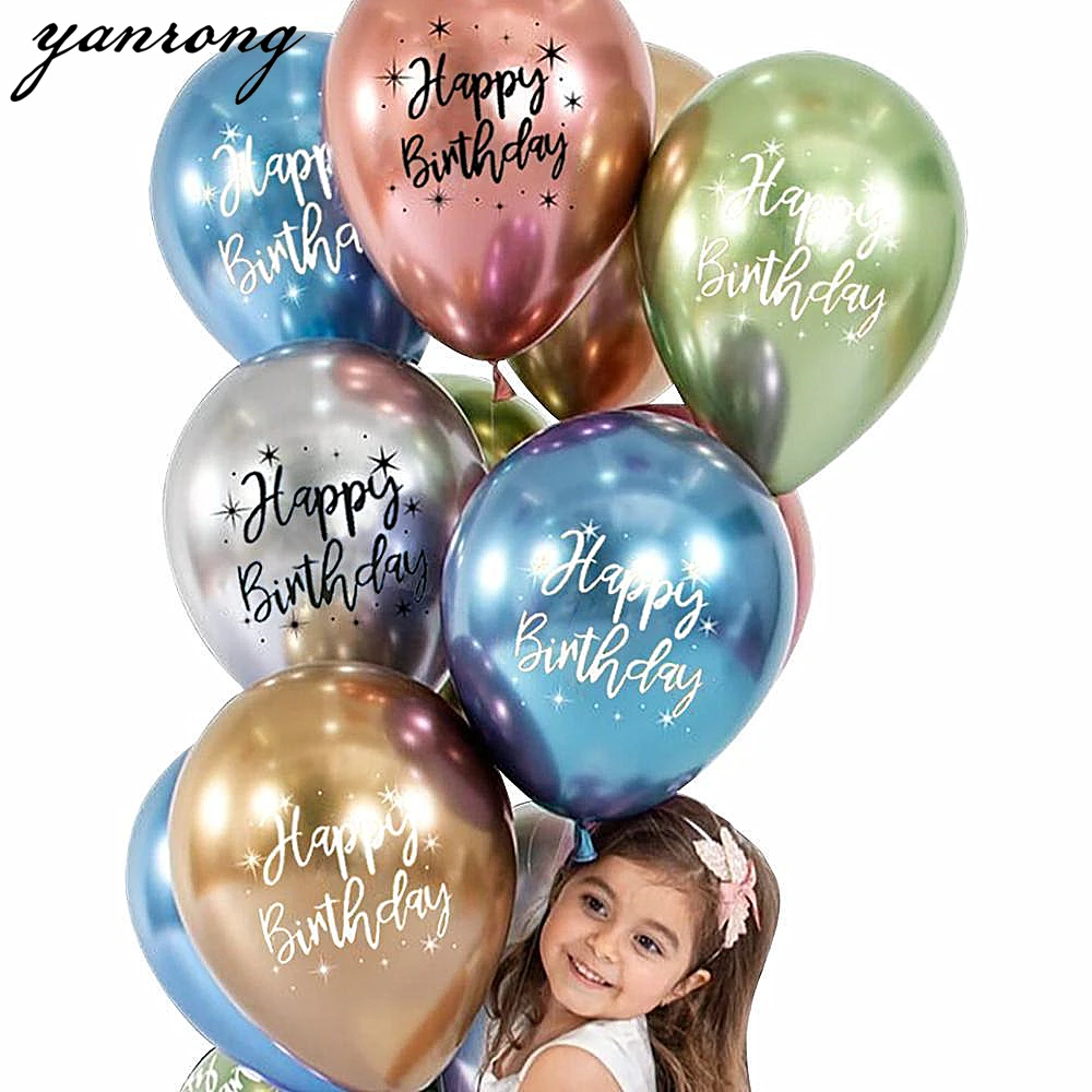 12 дюймов 10 шт. хромированные конфетти металлик латексные шары с принтом на день рождения гелиевый баллон металлические шарики украшения для вечерние