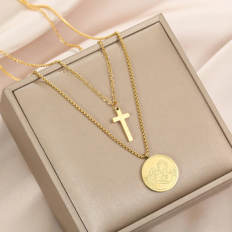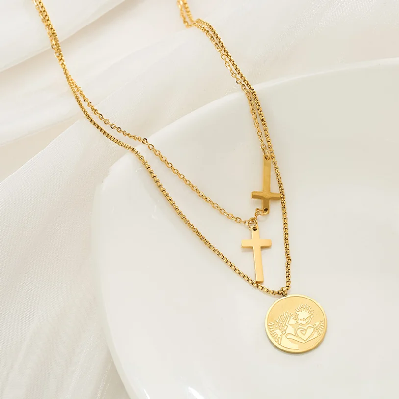 316L нержавеющая сталь 2021 новые модные высококлассные ювелирные изделия крест круговой узор Подвески цепочка колье ожерелья подвески для женщин